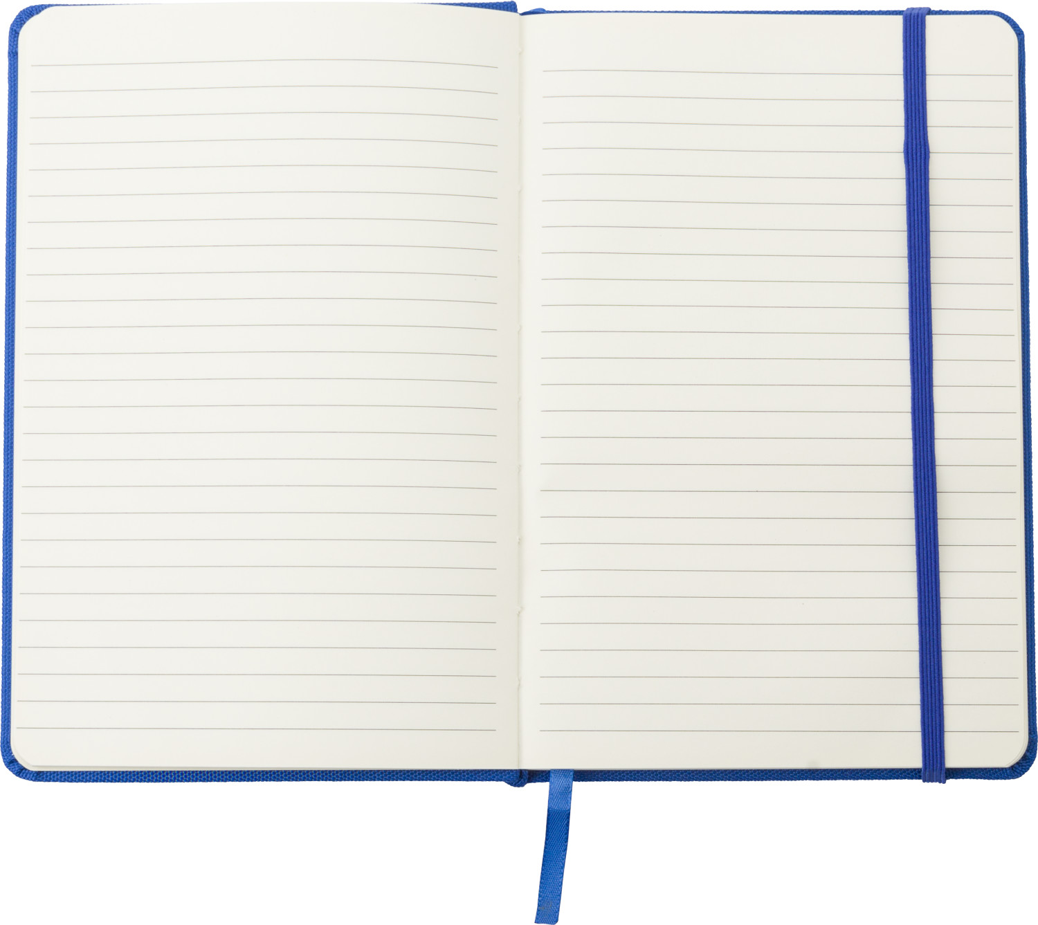 Notizbuch aus rPET und PU (A5) mit Gummiband zum Verschließen und Lesezeichenband. Das Notizbuch hat 80 linierte Seiten aus 70 g / m² Papier.