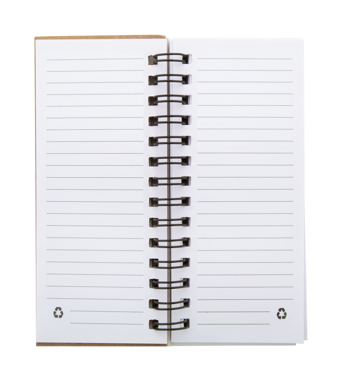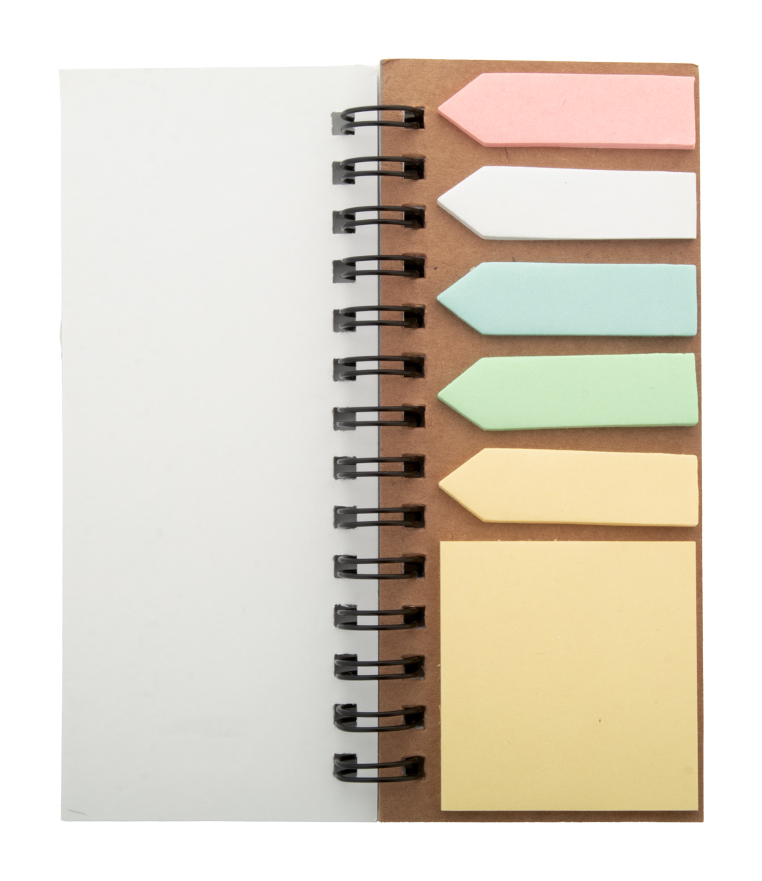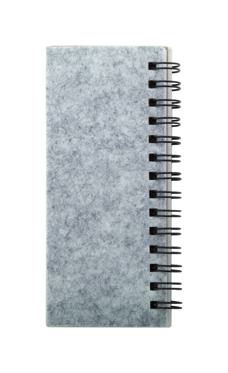 Spiralnotizbuch mit RPET-Filzüberzug, 40 linierten Blättern aus Recyclingpapier, 25 Haftnotizen und 125 Seitenmarkern (in 5 verschiedenen Farben).