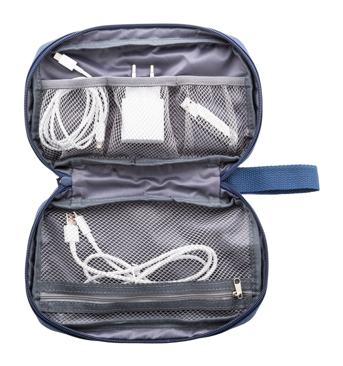 RPET-Kabeltasche mit Reißverschluss, mit Netz-Innenfächern und Reißverschlusstasche vorne. Material: 600D RPET-Polyester. Mit RPET-Label.