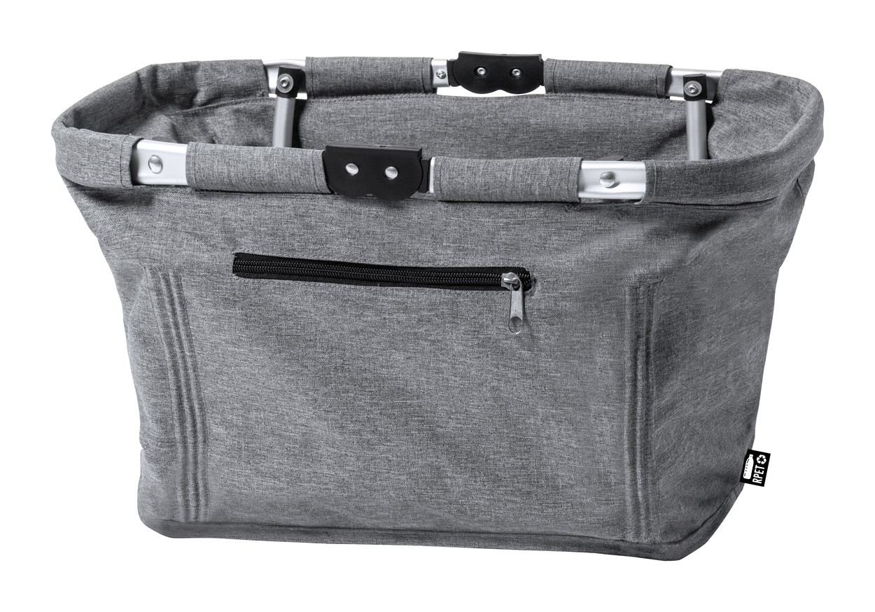 Faltbarer Picknick-Korb aus 600D RPET Polyester mit Aluminiumrahmen, Reißverscluss-Seitentasche und RPET-Label.