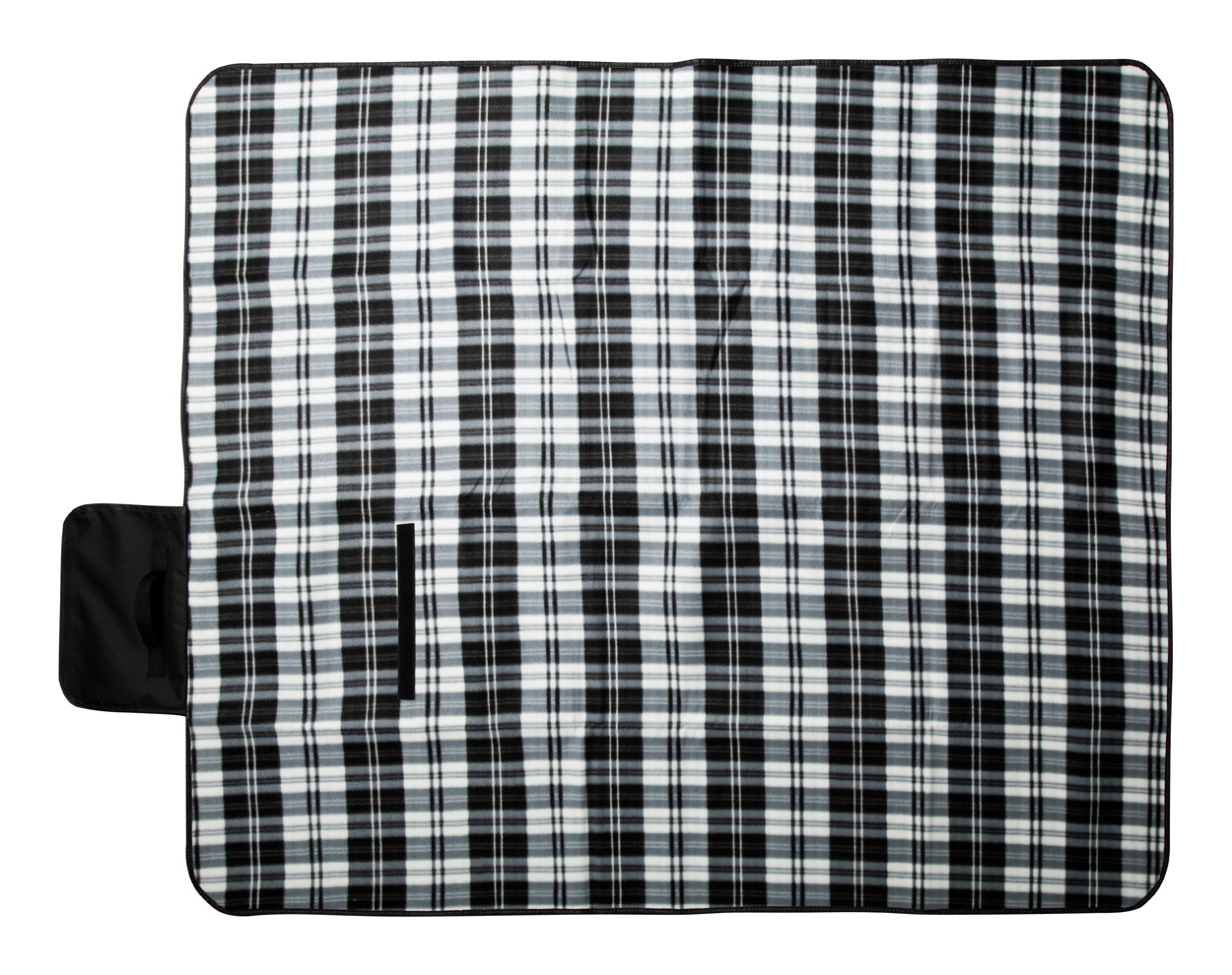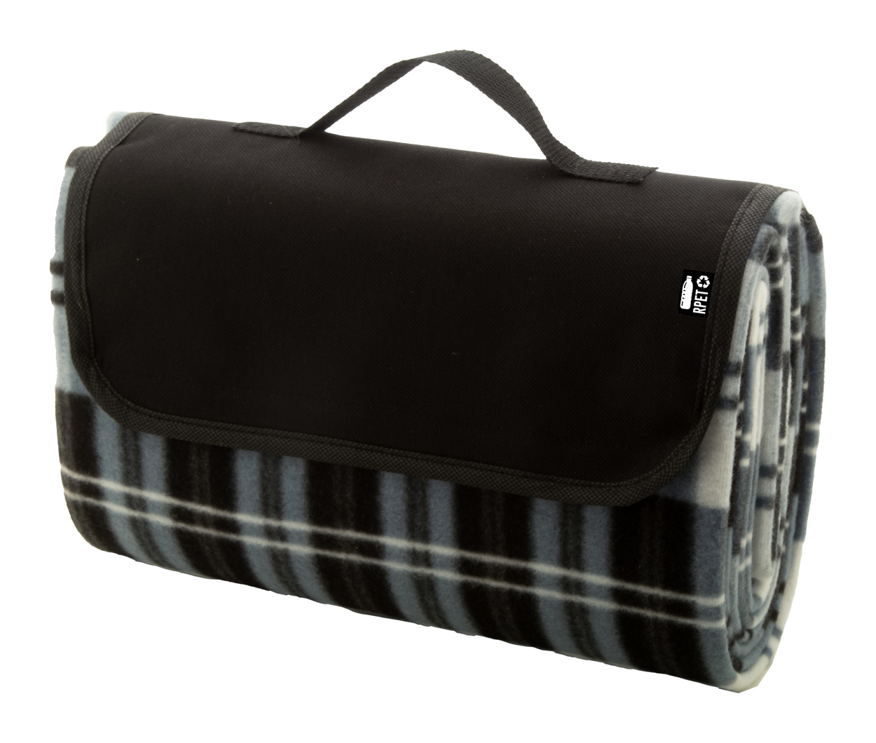 Faltbare Picknickdecke aus RPET-Polarfleece mit wasserabweisender Rückseite und Henkel. Material: RPET-Polyester, 160 g / m².