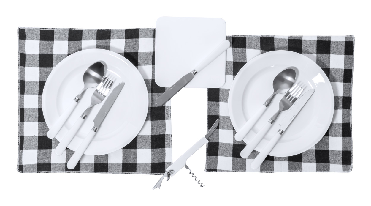 13-teiliges Picknick-Geschirr- und Besteckset für 2 Personen, verpackt in einer Tragetasche aus 600D RPET Polyester.