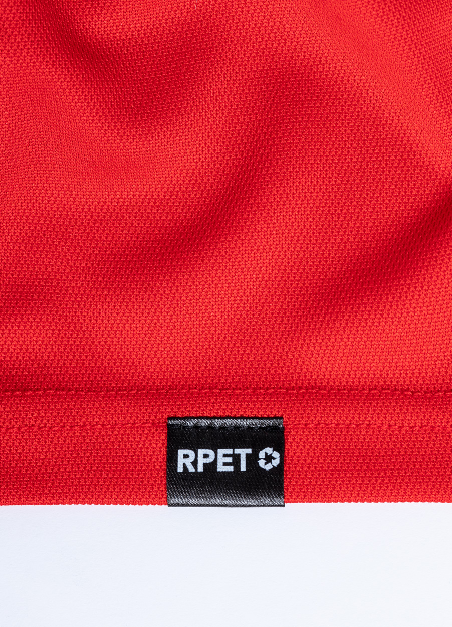 Atmungsaktives Polo-Shirt aus 100% RPET Polyester (180 g / m²) mit 3 farblich abgestimmten Knöpfen. Inkl. RPET-Label.