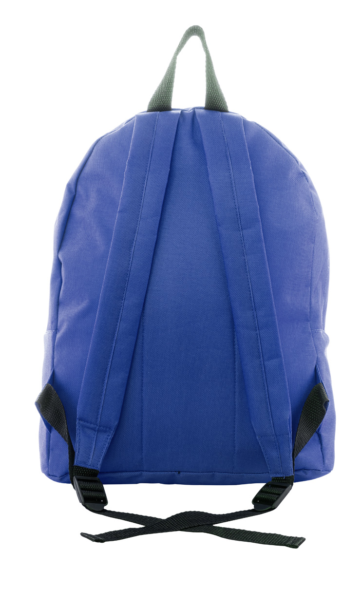 RPET-Rucksack mit Reißverschluss-Hauptfach, Reißverschluss-Vortasche, gepolstertem Rücken und Schultergurten. Material: 600D RPET-Polyester. Mit RPET-Label.