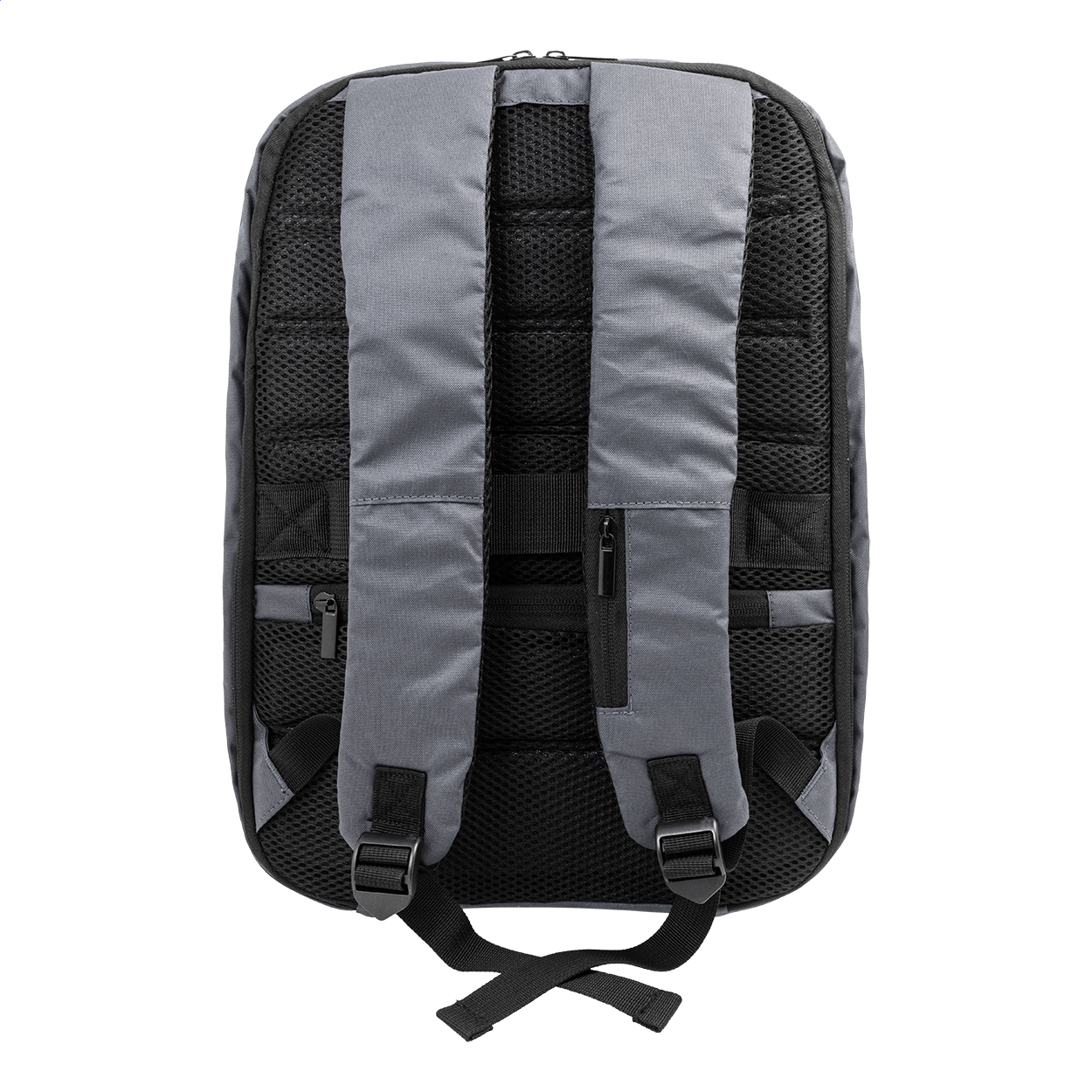 Anti-Diebstahl-Rucksack aus RPET mit Reißverschluss-Hauptfach, gepolstertem Laptop- (15") und Tabletfacht (12"), Trolley-Gurt, gepolsterten Rücken und Schultergurten und verstecktem Anti-Diebstahl-Fach. Material: 300D RPET-Polyester. Mit Label RPET.