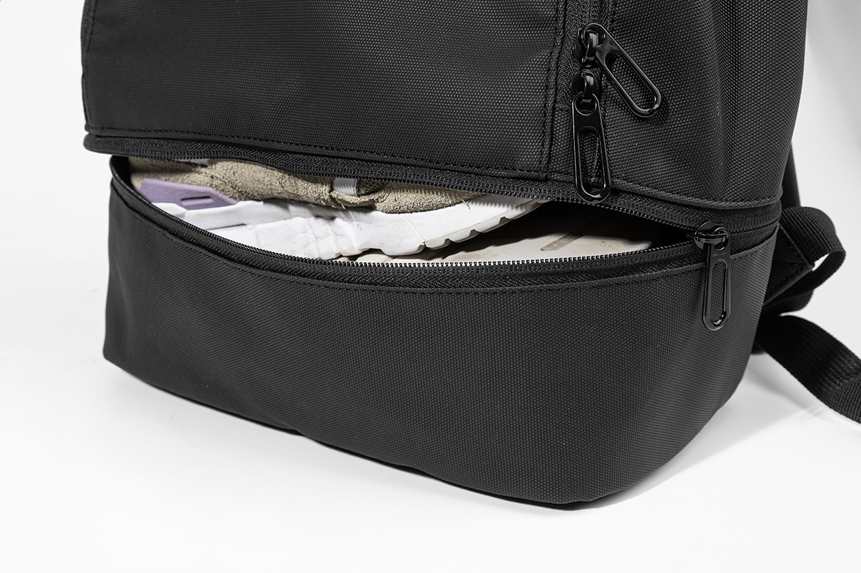 Wasserdichter Rucksack aus RPET mit Reißverschluss-Hauptfach, gepolstertem Laptopfach (bis 13"), Reißverschlussfach am Boden und versteckter Seitentasche. Gepolsterter Rücken und Schultergurte. Material: 600D RPET-Polyester, PU beschichtet. Mit Label RPET.