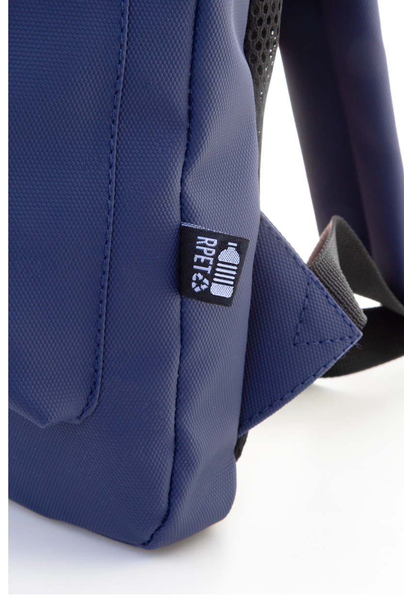 Wasserdichter, schlanker RPET-Laptop-Rucksack mit Reißverschlussfach für den Laptop (15") und Reißverschlusstasche vorne. Mit gepolstertem Rücken und Schultergurten. Material: PU-beschichtetes 600D RPET-Polyester. Mit RPET-Label.