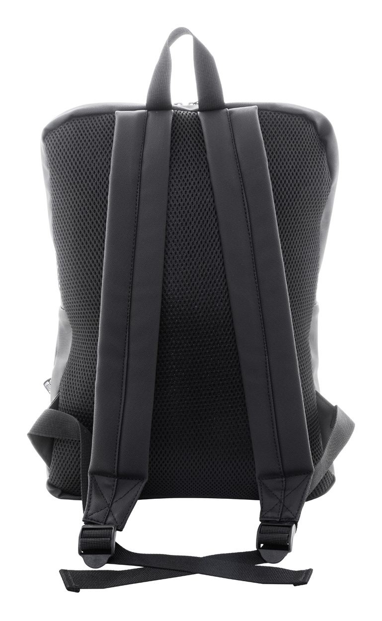 Wasserdichter, schlanker RPET-Laptop-Rucksack mit Reißverschlussfach für den Laptop (15") und Reißverschlusstasche vorne. Mit gepolstertem Rücken und Schultergurten. Material: PU-beschichtetes 600D RPET-Polyester. Mit RPET-Label.