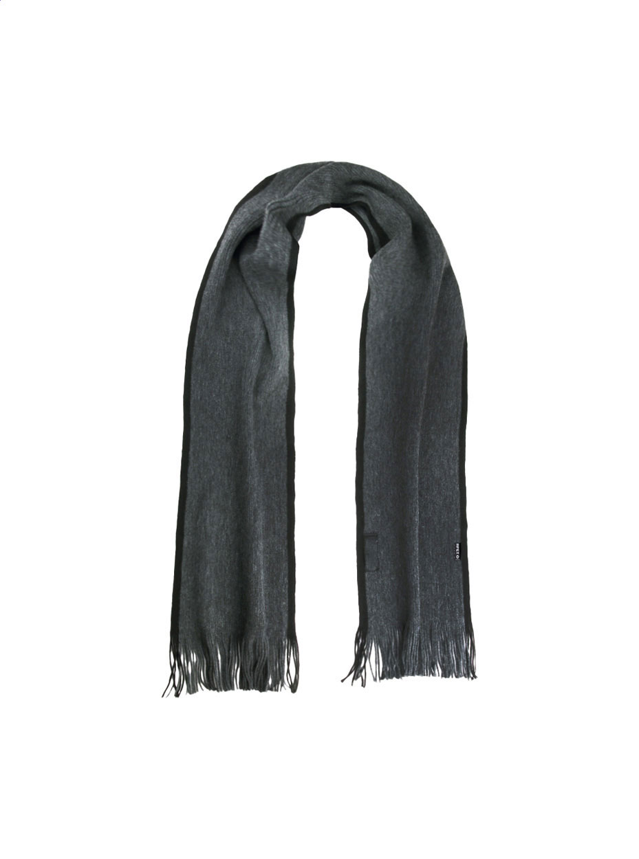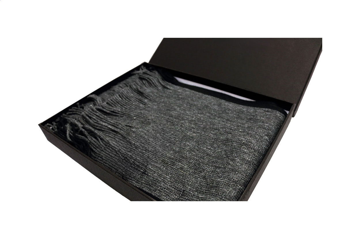 Eleganter Schal aus RPET Polyester mit RPET-Label, einzeln in schwarzer Geschenkbox.