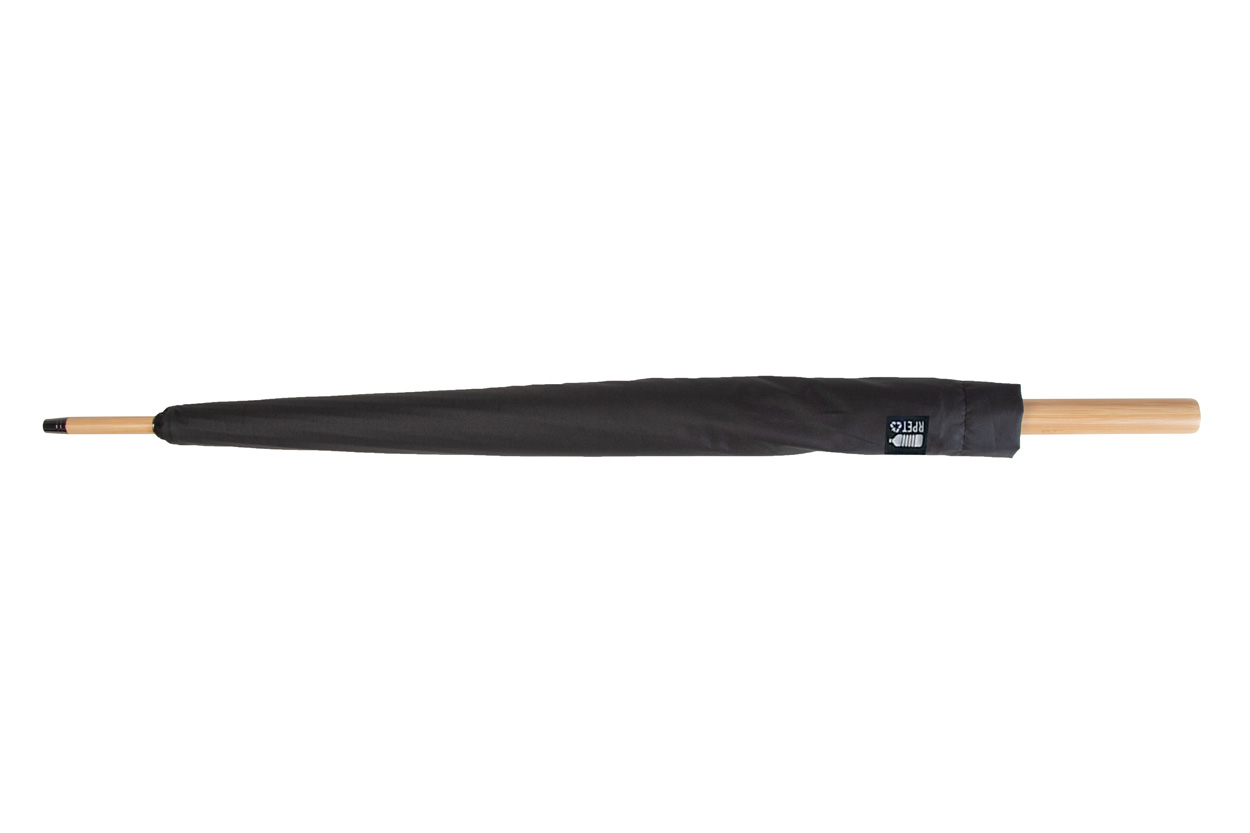 Manueller Windproof-Regenschirm mit 16 Segmenten, Griff und Schaft aus Bambus, Gestell und Gestänge aus Glasfaser. In farblich abgestimmtem Etui. Material: 190T RPET-Pongee. Mit RPET-Label.