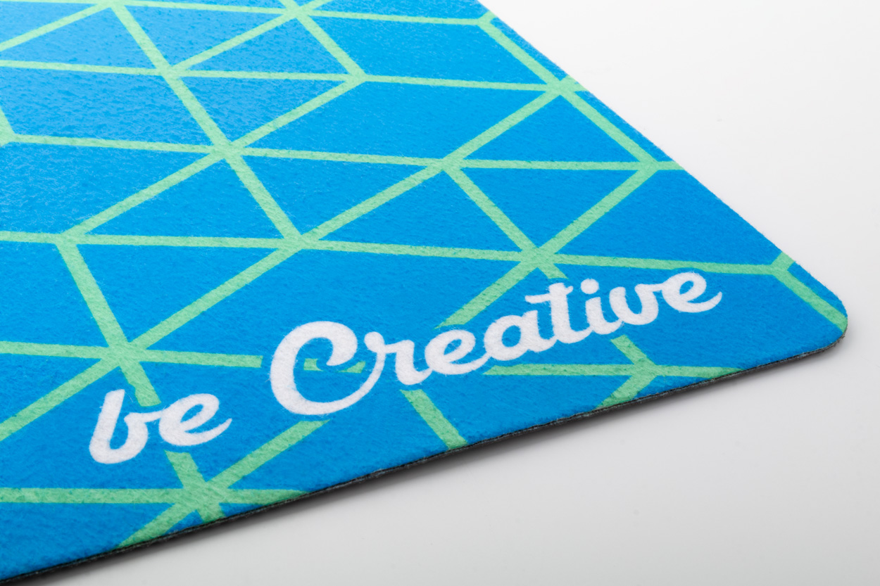 Individuelles Schreibtisch-Mauspad aus RPET-Filz mit rutschfester Gummiunterseite. Preis inkl. Sublimationsdruck. Mindestmenge: 50 Stk.