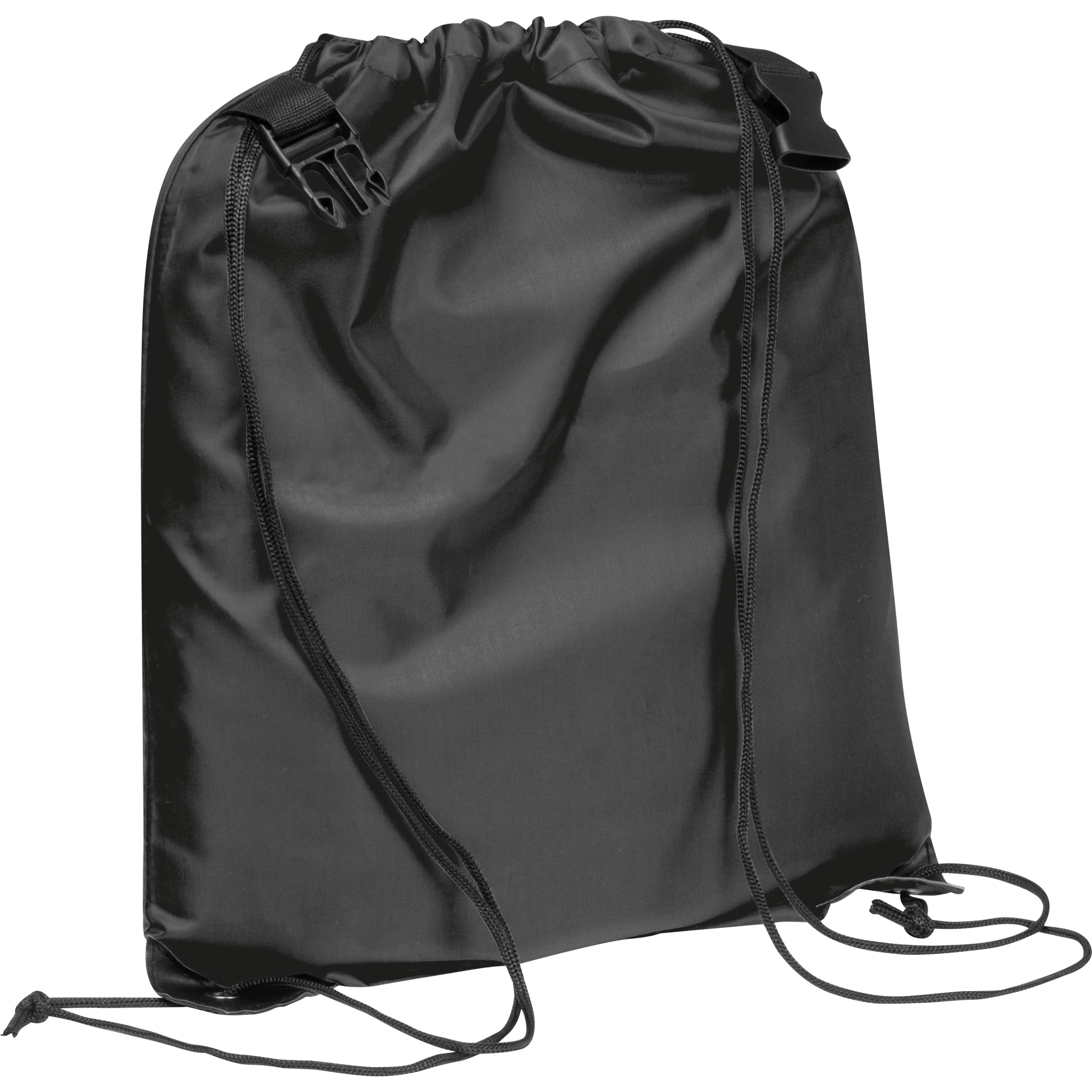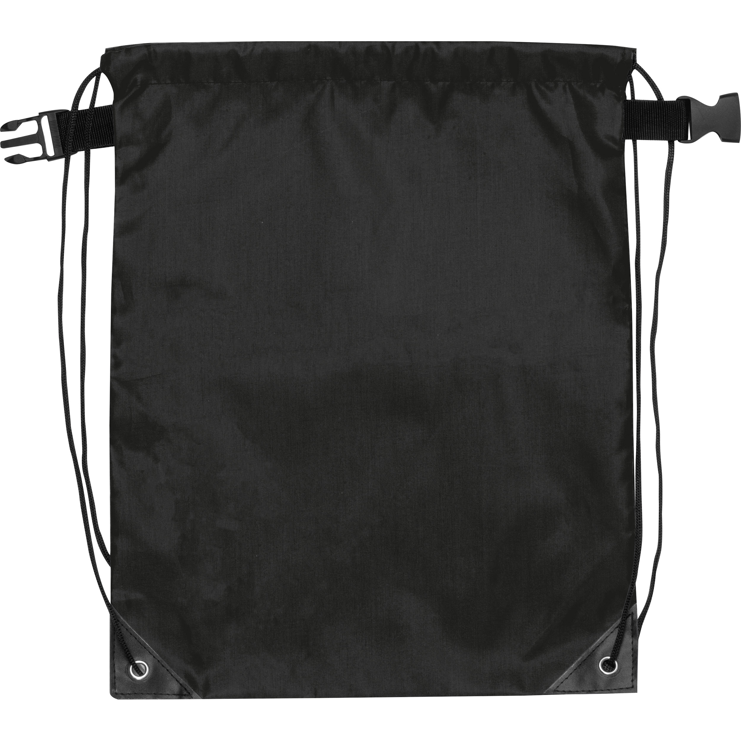 Sportbeutel aus recyceltem PET. Der Beutel verfügt neben den Schulterriemen und den verstärkten Ösen noch über einen zusätzlichen Klickverschluss oben. Hiermit läßt sich der Beutel bequem z. B. an einem Rucksack, einem Trolley usw. befestigen. Ihre Werbung drucken wir mittig auf eine Seite.