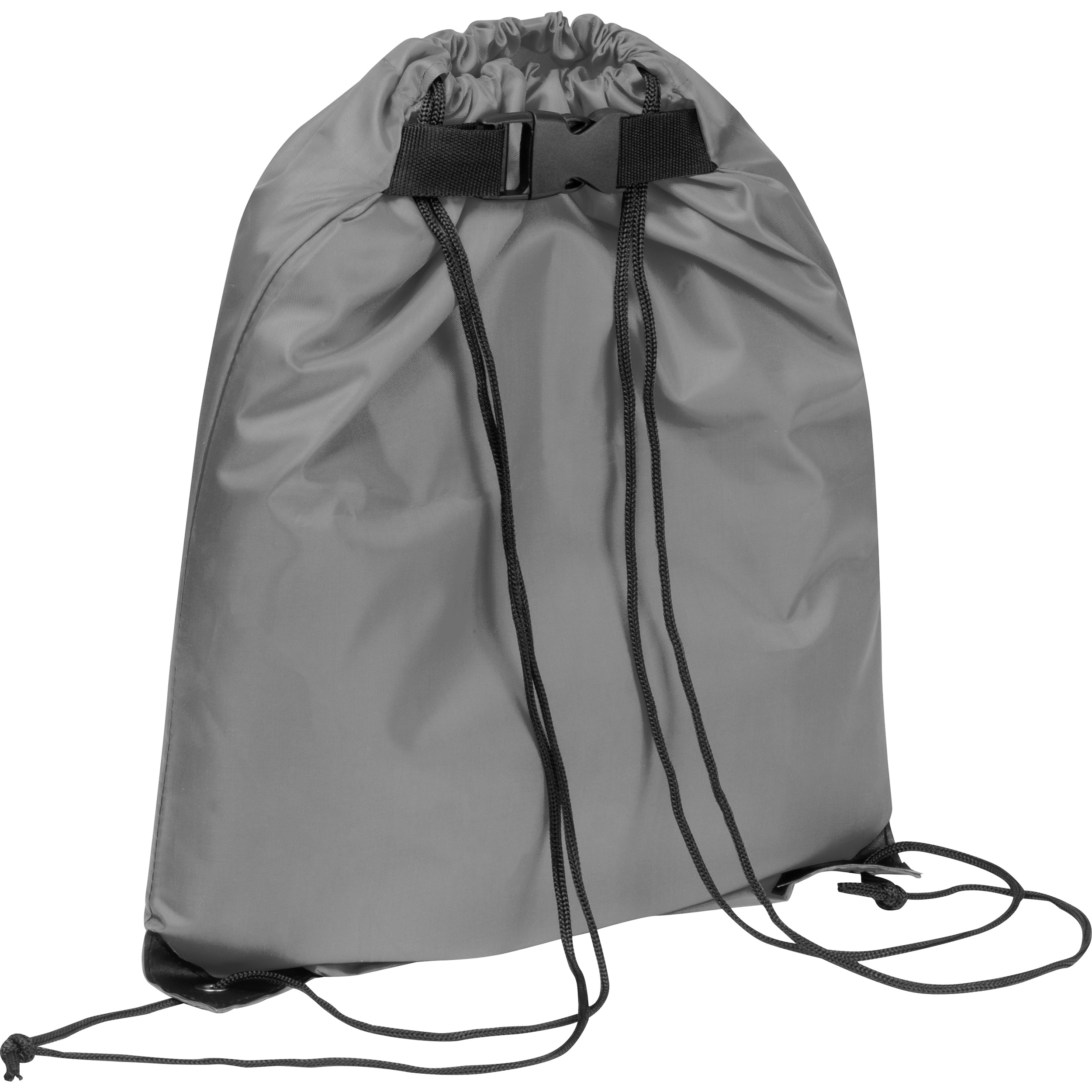 Sportbeutel aus recyceltem PET. Der Beutel verfügt neben den Schulterriemen und den verstärkten Ösen noch über einen zusätzlichen Klickverschluss oben. Hiermit läßt sich der Beutel bequem z. B. an einem Rucksack, einem Trolley usw. befestigen. Ihre Werbung drucken wir mittig auf eine Seite.