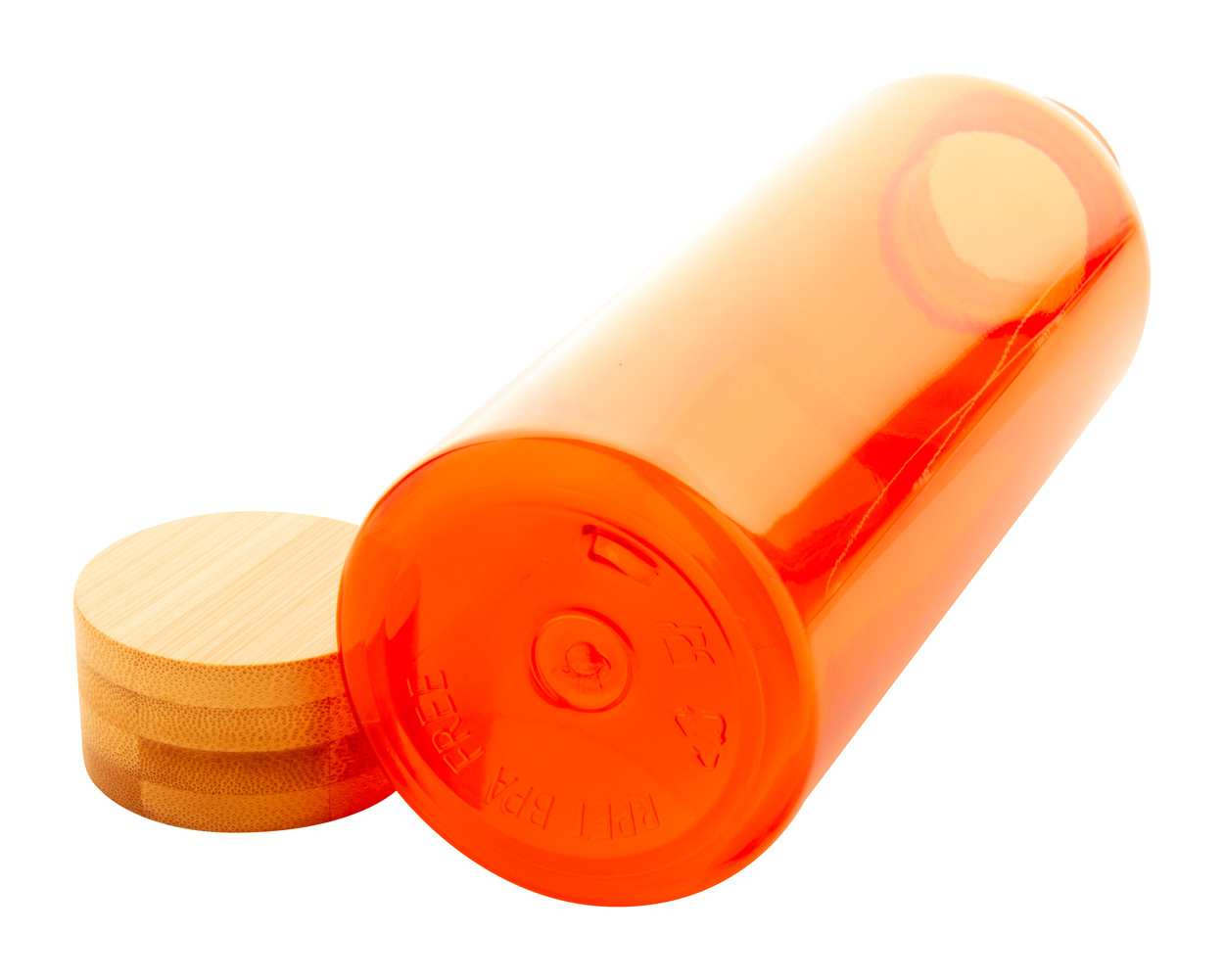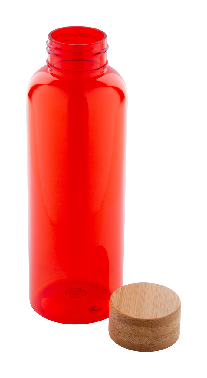Sportflasche aus RPET-Kunststoff (BPA-frei) mit Bambusdeckel. Füllmenge: 500 ml. Nicht geeignet für kohlensäurehaltige Getränke.