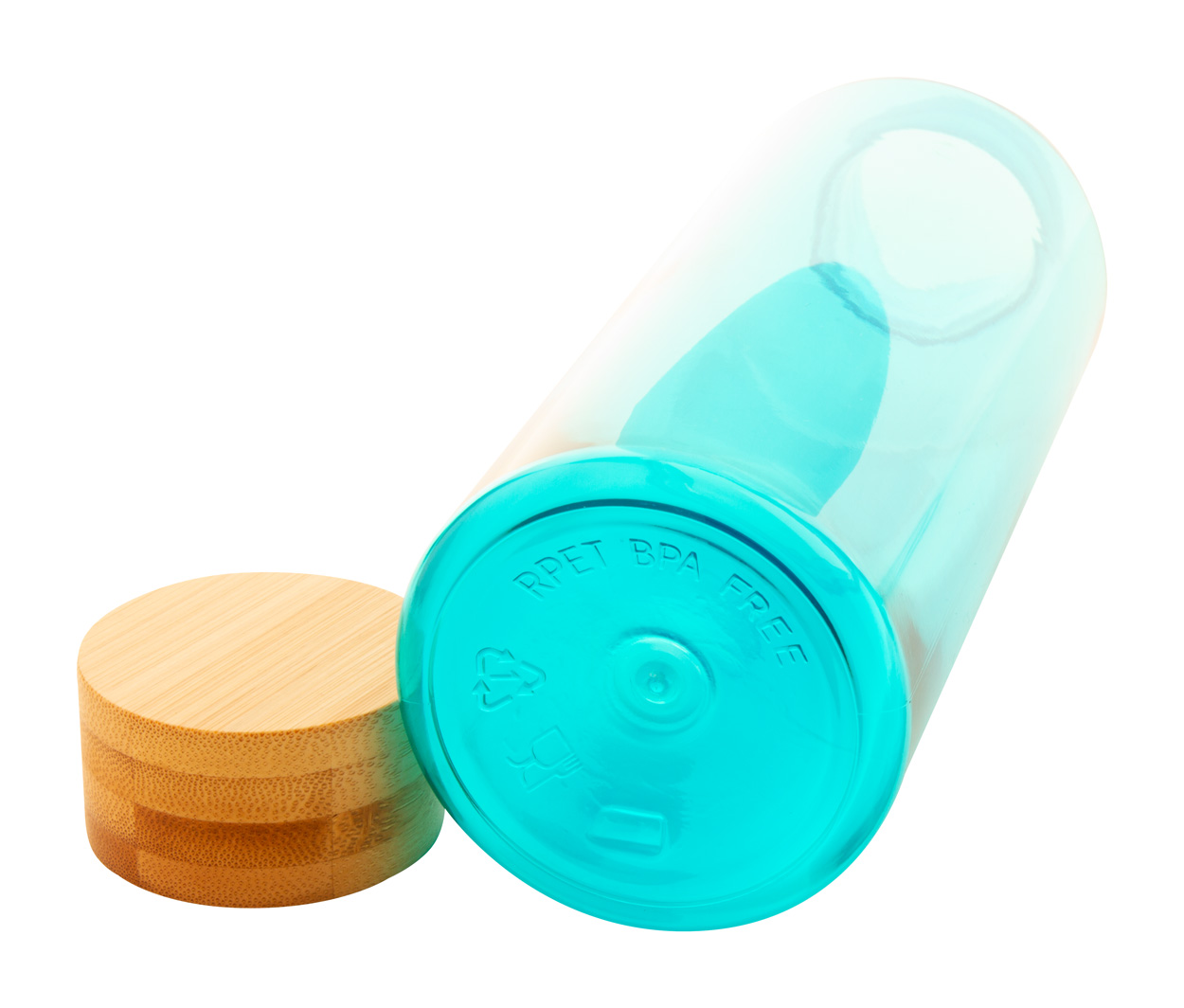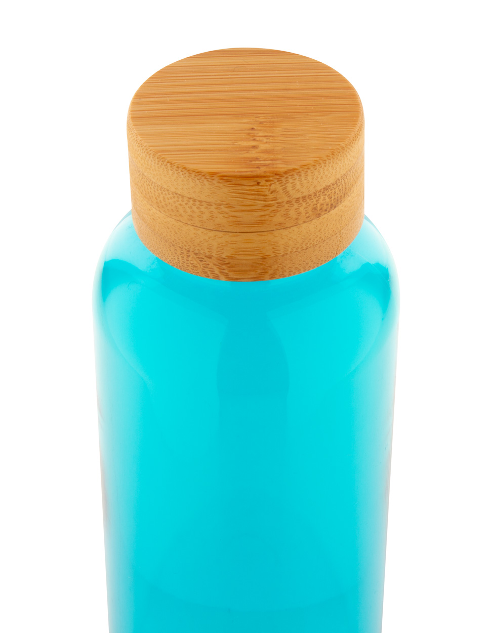 Sportflasche aus RPET-Kunststoff (BPA-frei) mit Bambusdeckel. Füllmenge: 500 ml. Nicht geeignet für kohlensäurehaltige Getränke.