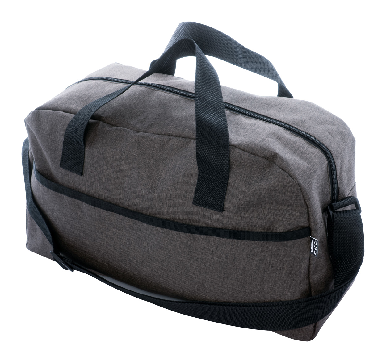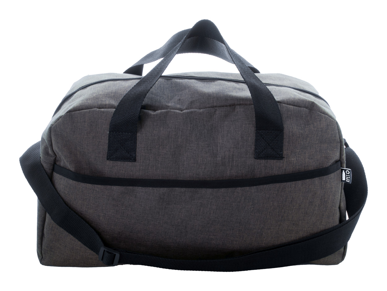 RPET Sporttasche mit Reißverschluss-Hauptfach, Vordertasche und verstellbarem Schultergurt. Material: 600D RPET Polyerster mit RPET-Label.