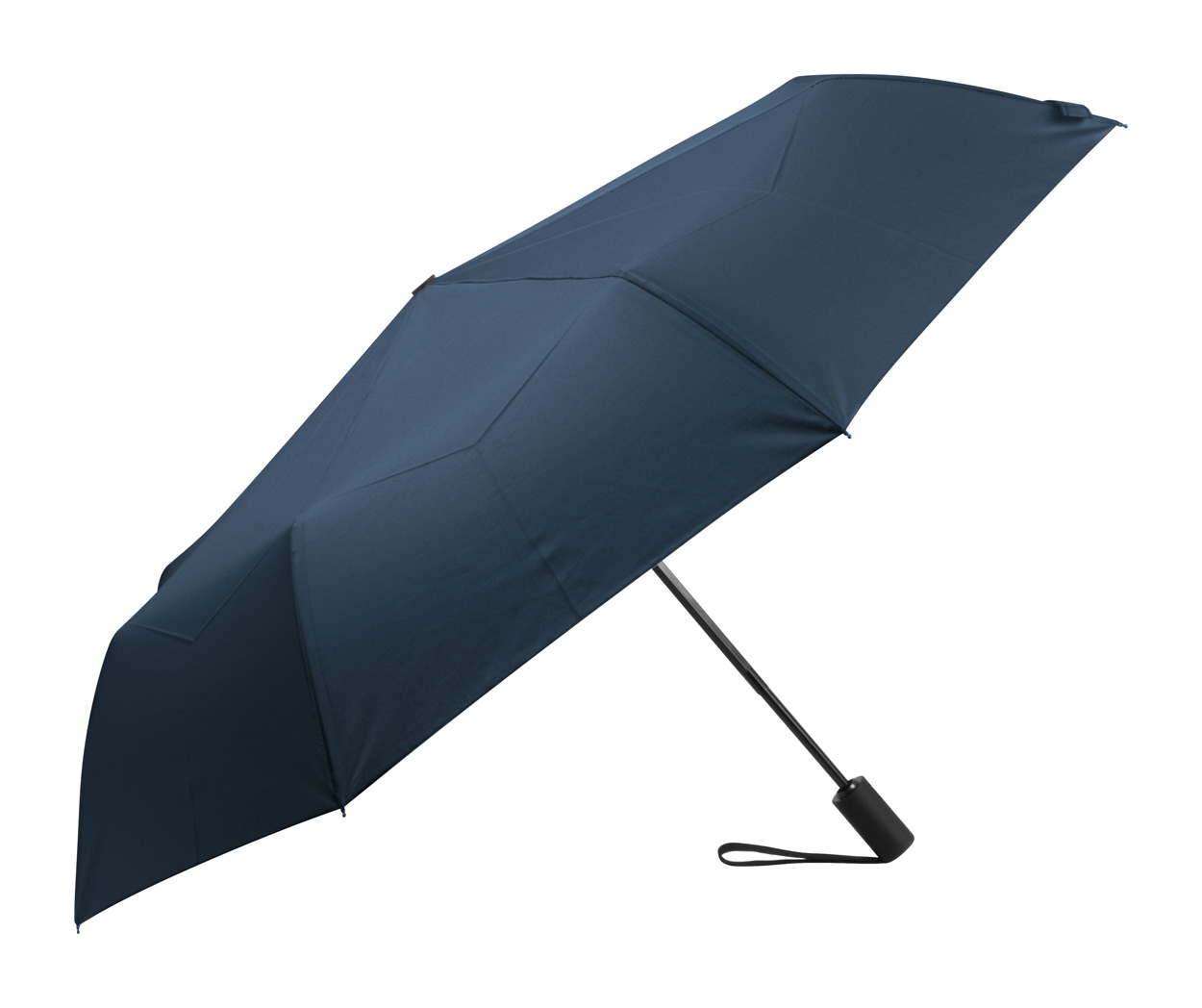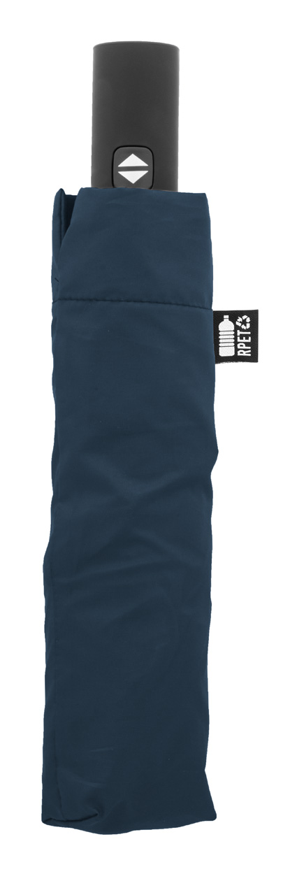 Vollautomatischer (öffnen / schließen), Windproof-Taschenschirm mit 8 Segmenten, mit Metallrahmen, Fiberglasspeichen und gummiertem Griff. In farblich abgestimmtem Etui. Material: 190T RPET Pongee. Mit RPET-Label.