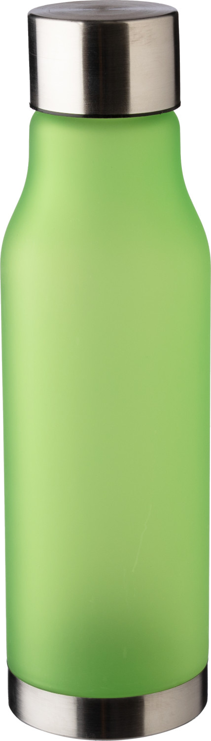 RPET-Trinkflasche (600 ml) mit Deckel und Boden aus Edelstahl (201). Gummierte Oberfläche der Flasche (mattiert). Einzeln verpackt in Seidenpapier.