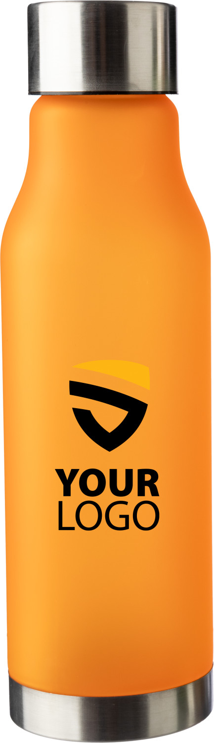 RPET-Trinkflasche (600 ml) mit Deckel und Boden aus Edelstahl (201). Gummierte Oberfläche der Flasche (mattiert). Einzeln verpackt in Seidenpapier.