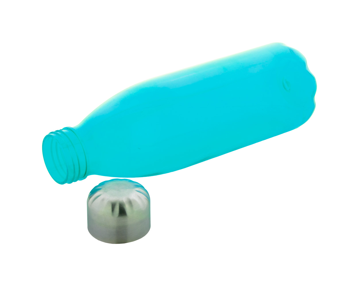 Trinkflasche aus RPET (BPA-frei) mit Edelstahldeckel. Füllmenge: 600 ml. Nicht geeignet für kohlensäurehaltige Getränke.