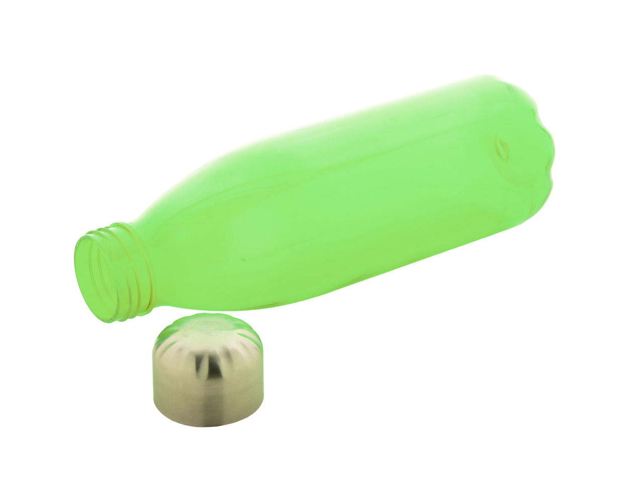 Trinkflasche aus RPET (BPA-frei) mit Edelstahldeckel. Füllmenge: 600 ml. Nicht geeignet für kohlensäurehaltige Getränke.