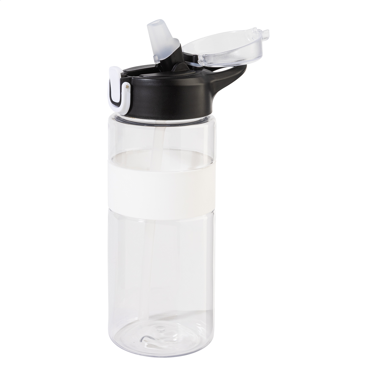 Trinkflasche aus RPET mit Silikonring, Flip-Top-Trinkdeckel mit integriertem Trinkhalm, Mundstück aus Silikon und Sicherheitsverschluss. Füllmenge: 700 ml. BPA-Frei. Nicht geeignet für kohlensäurehaltige Getränke.