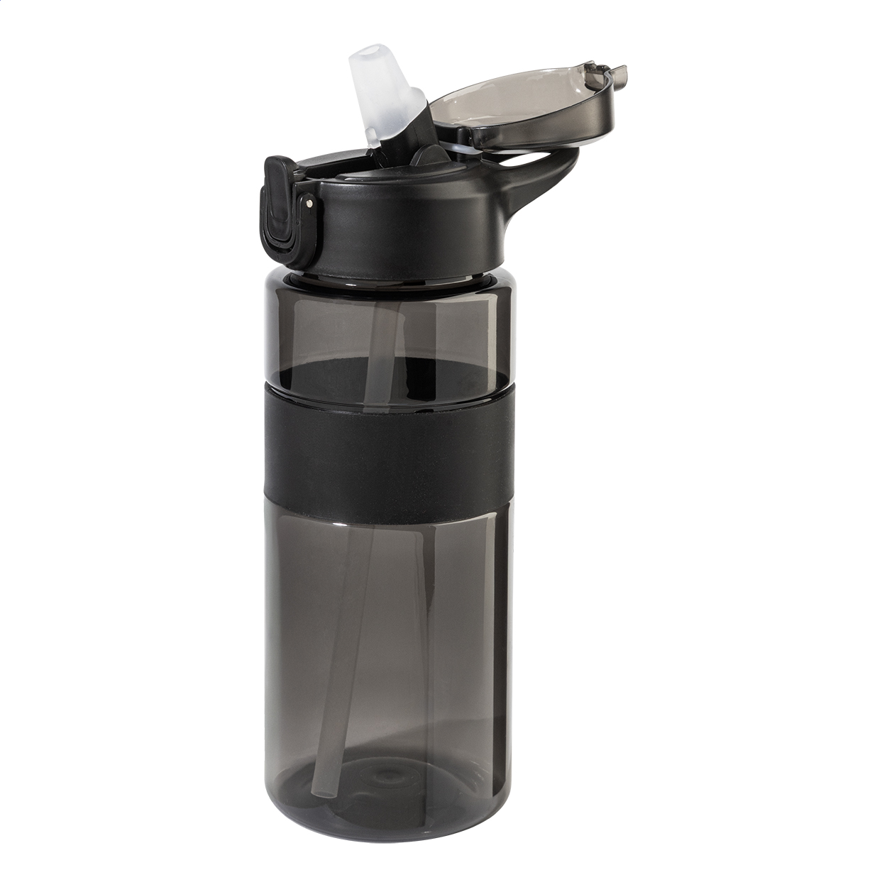 Trinkflasche aus RPET mit Silikonring, Flip-Top-Trinkdeckel mit integriertem Trinkhalm, Mundstück aus Silikon und Sicherheitsverschluss. Füllmenge: 700 ml. BPA-Frei. Nicht geeignet für kohlensäurehaltige Getränke.