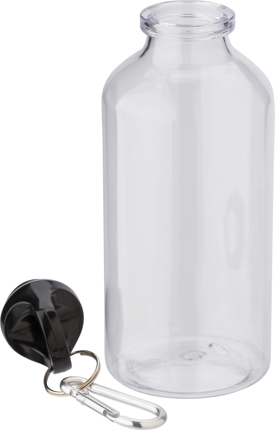 RPET-Trinkflasche (400 ml), mit Schraubverschluss, Schlüsselring und Karabinerhaken.