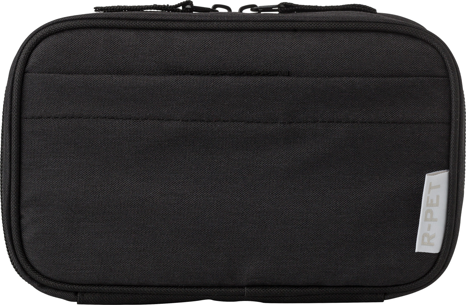 Reisetasche aus rPET 300D Polyester. Ein Fach mit mehreren Taschen für Kabel und Reisedokumente. Mit Klettverschluss-Fronttasche. Inklusive rPET-Etikett.