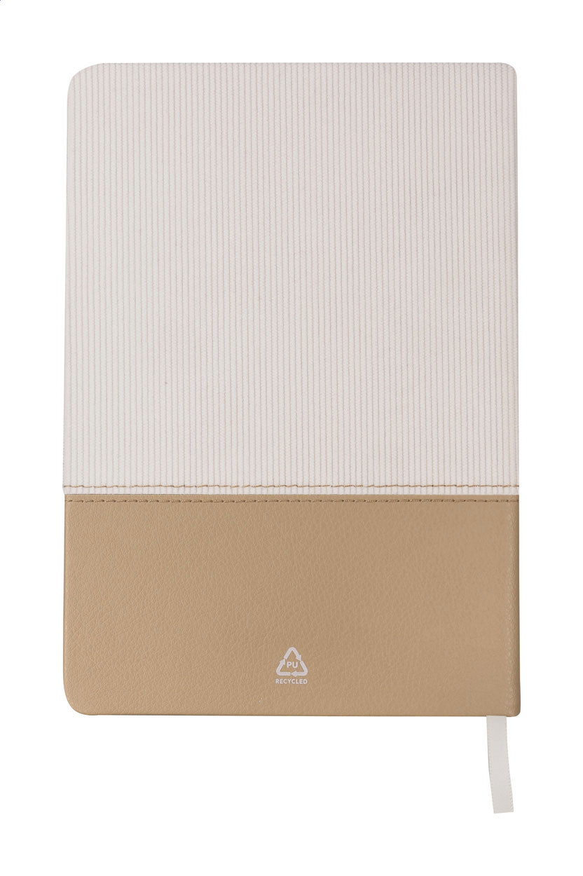 A5 Notizbuch mit Umschlag aus strukturiertem Polyester und recyceltem Kunstleder, Lesezeichen und 80 linierten Seiten.