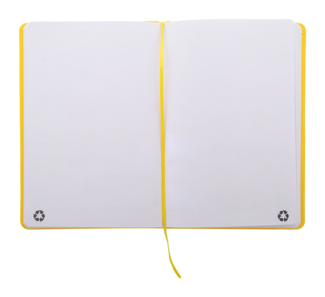 Notizbuch mit recyceltem PU-Lederbezug und 100 blanko Blättern aus Recyclingpapier. Mit farblich passendem Lesezeichen und Gummiband. A5-Größe.