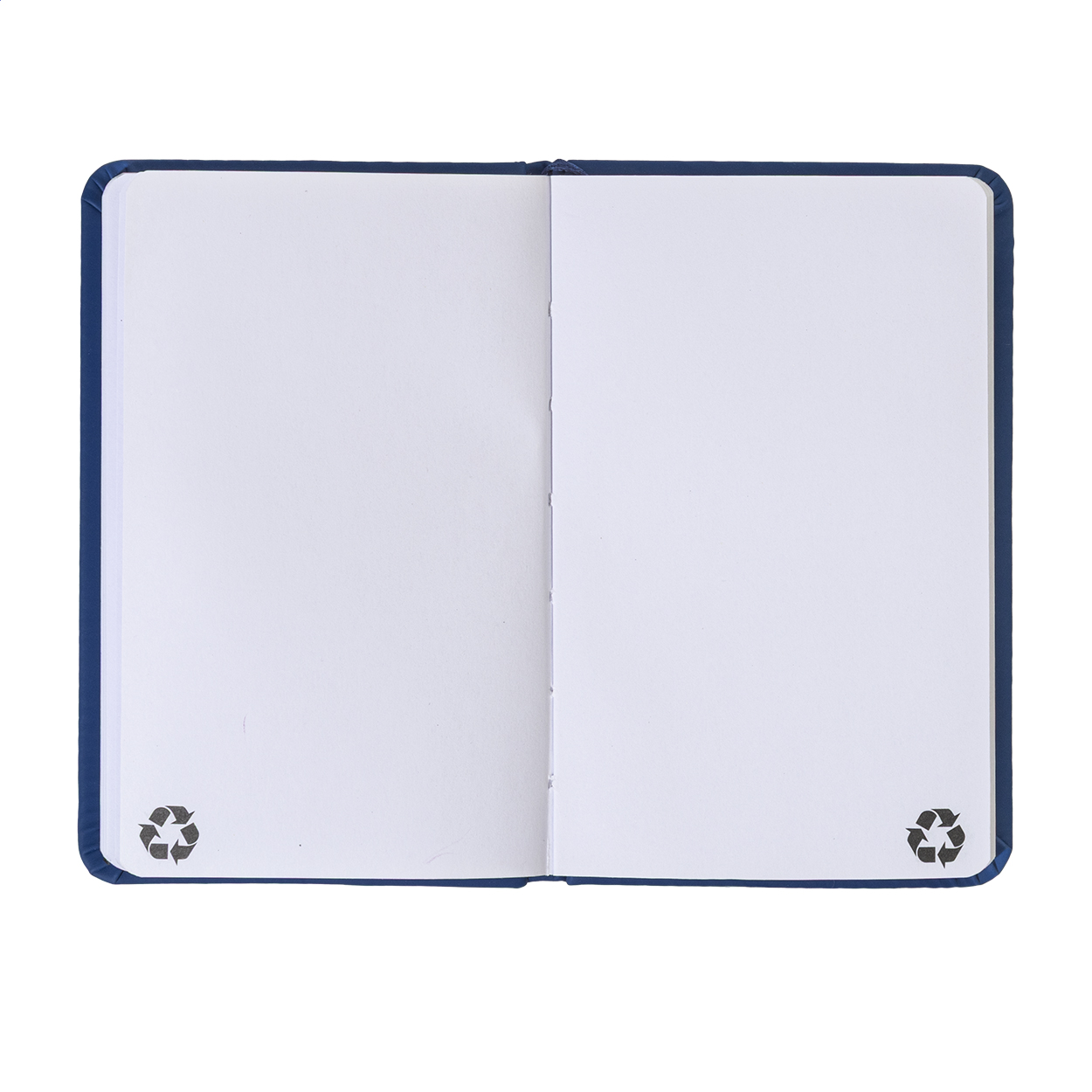Notizbuch mit recyceltem PU-Lederbezug und 100 blanko Blättern aus Recyclingpapier. Mit farblich passendem Lesezeichen und Gummiband. A6-Größe.
