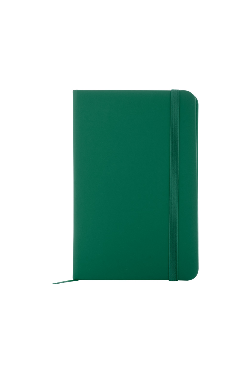 Notizbuch mit recyceltem PU-Lederbezug und 100 linierten Blättern aus Recyclingpapier. Mit farblich passendem Lesezeichen und Gummiband. A6-Größe.