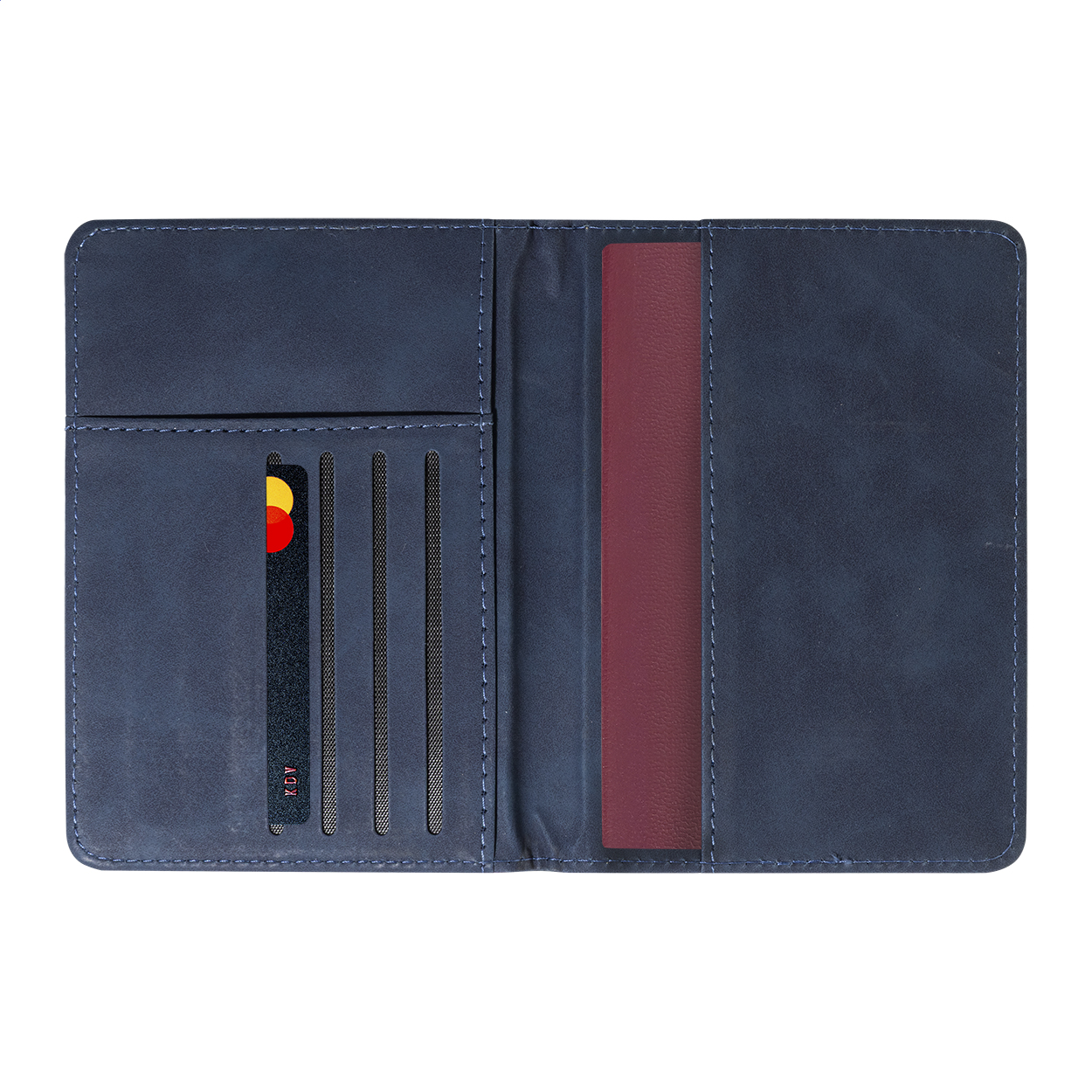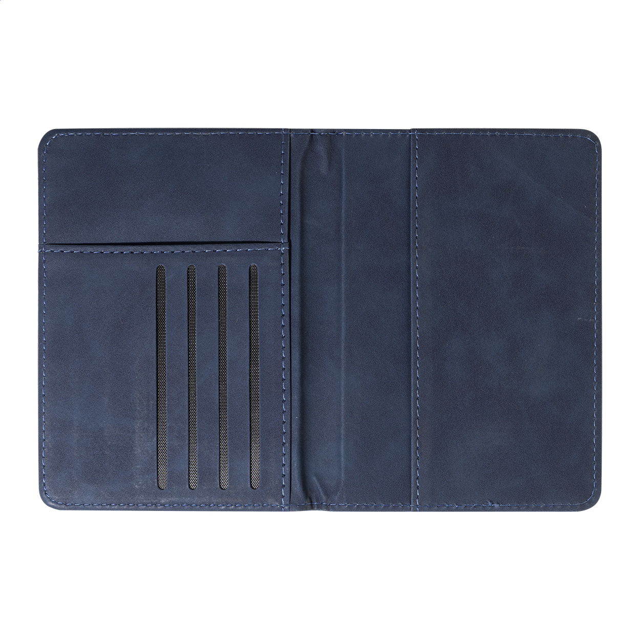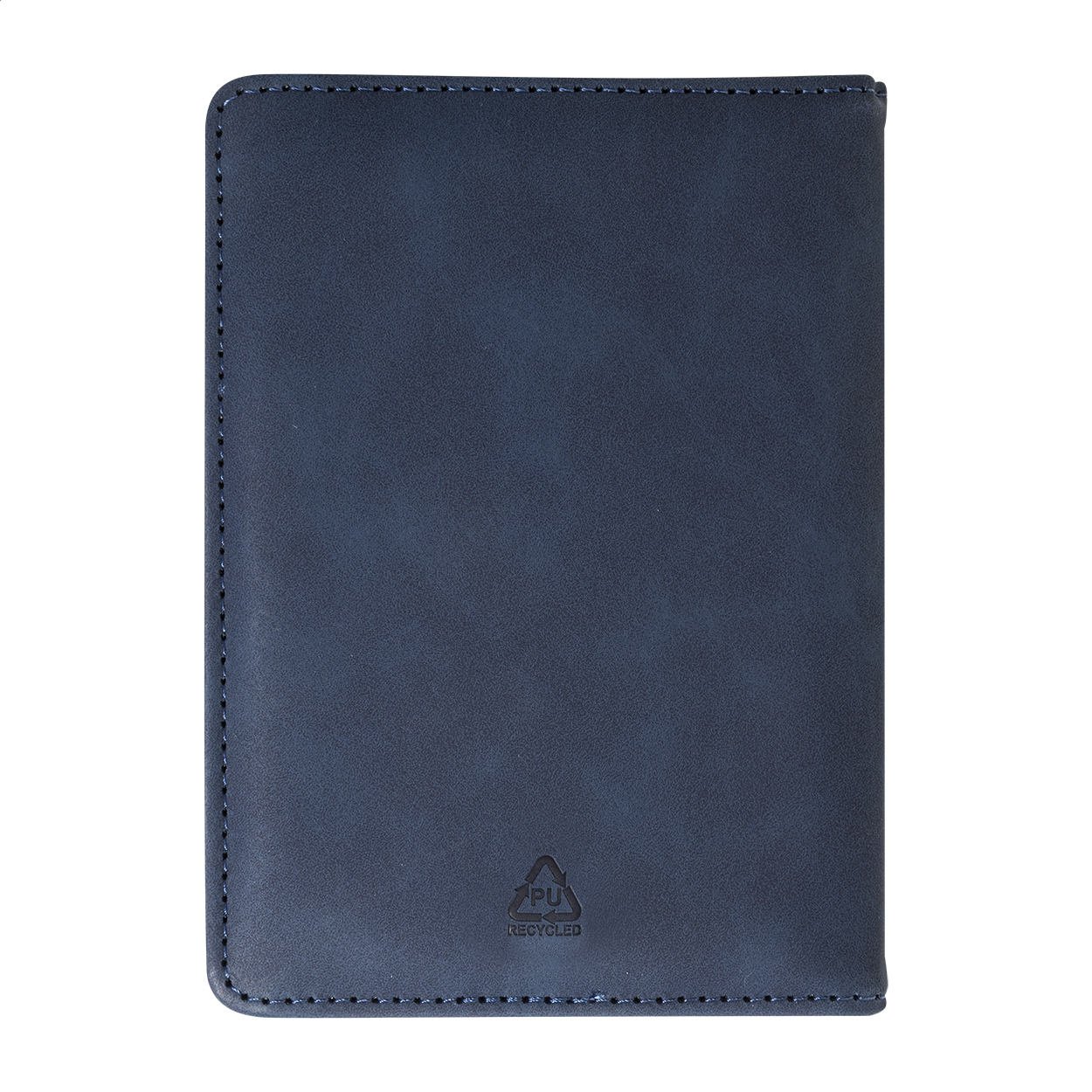 Set aus Reisepasshülle und Gepäckanhänger aus recyceltem Kunstleder. Einzeln in Kraftpapierbox.
