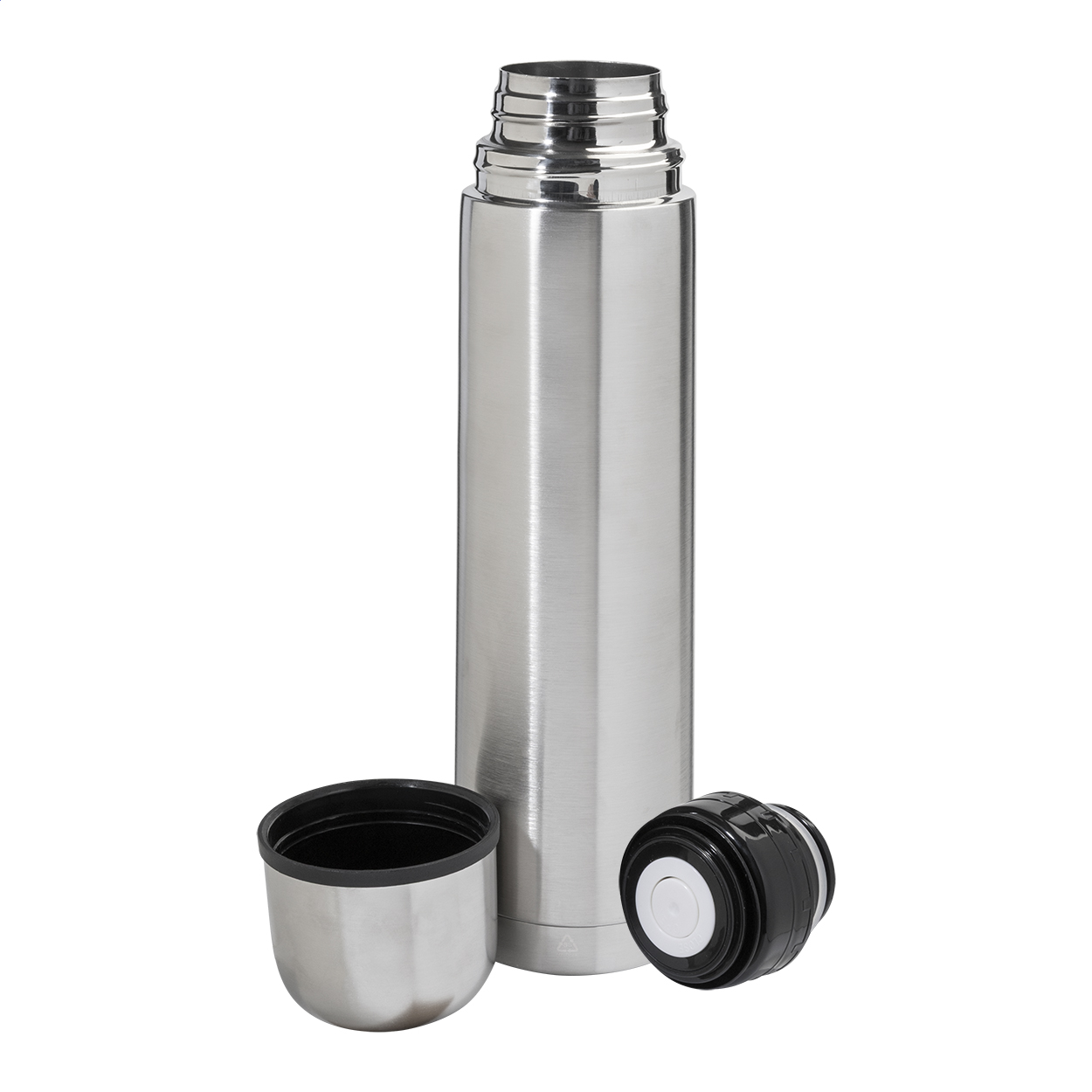 Doppelwandige Vakuum-Kanne aus recyceltem Edenstahl. Füllmenge: 1000 ml.
