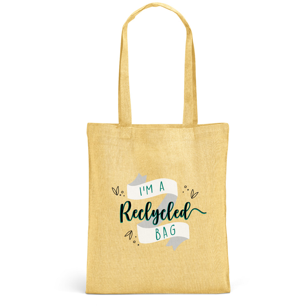 Tragetasche aus recycelter Baumwolle (70%), polyester (30% rPET) (140 g / m²) mit 60 cm langen Henkeln. Recycelte Baumwolle ist ungefärbt. Das Rohmaterial wird in seiner ursprünglichen Form und Farbe verwendet, ohne dass Chemikalien zum Färben oder Bleichen eingesetzt werden, was zu einer geringeren Umweltbelastung beiträgt. 380 x 420 mm
