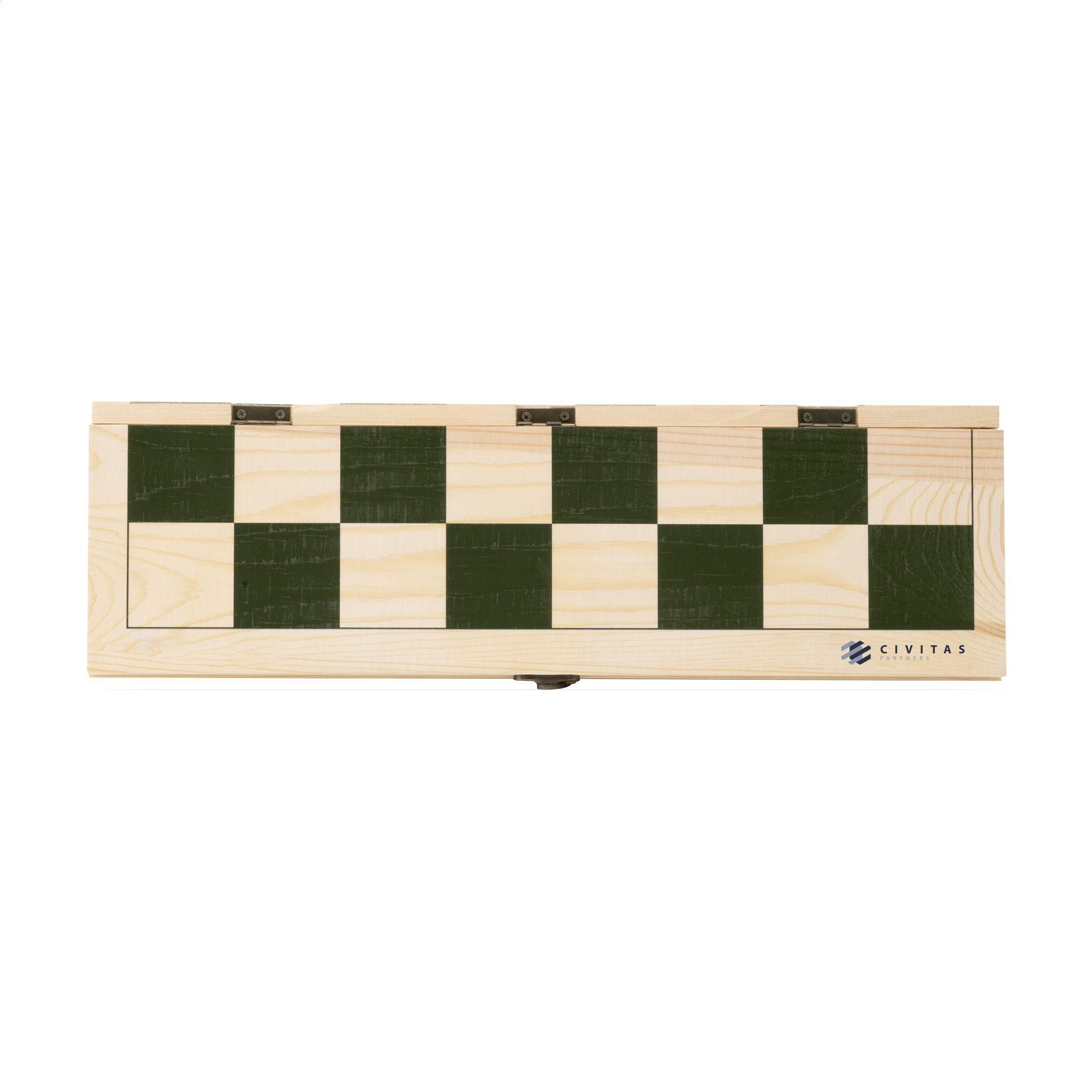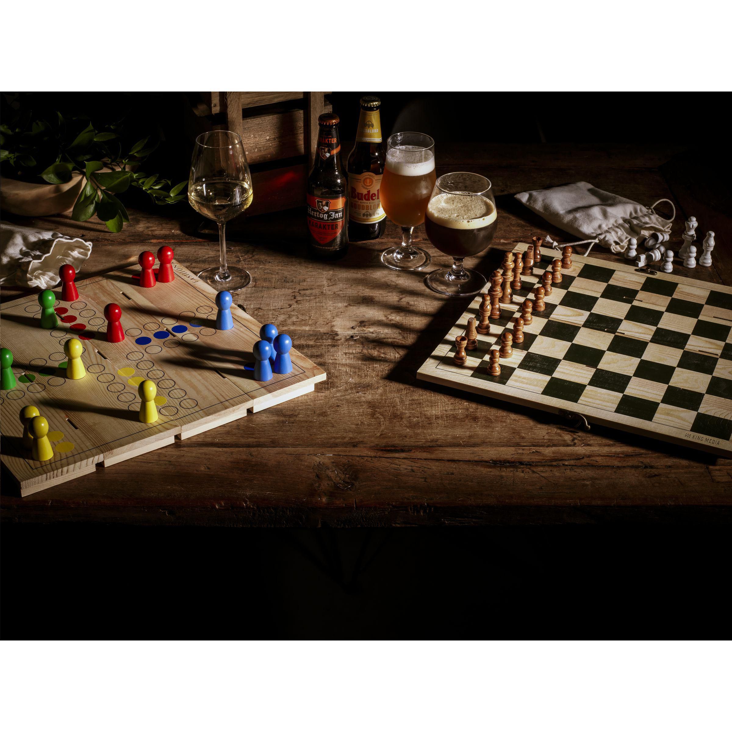 Rackpack Gamebox Chess: Weinkiste und Schachspiel in einem. Eine Geschenkverpackung für eine einzelne Flasche Wein. Wenn Sie die Box aufklappen, erhalten Sie ein komplettes Brettspiel. Wird mit Schachfiguren aus Holz in einer robusten Aufbewahrungstasche aus Segeltuch geliefert. Ein komplettes Geschenk für einen gelungenen Spieleabend. Rackpack: eine Wein-Geschenkbox aus FSC 100% zertifiziertes Holz mit einem neuen zweiten Leben! • geeignet für eine Flasche Wein • Kiefernholz • Wein nicht inklusive.