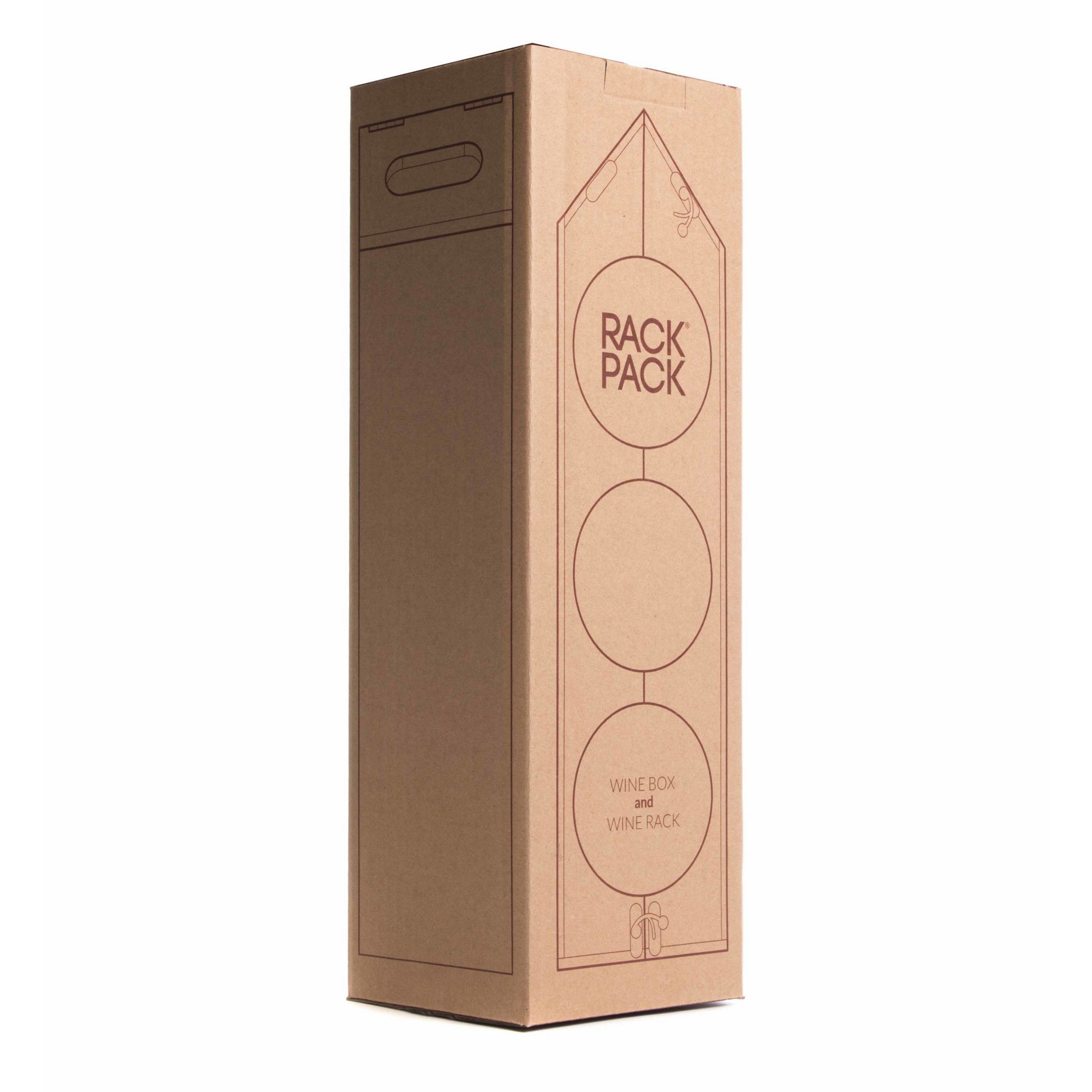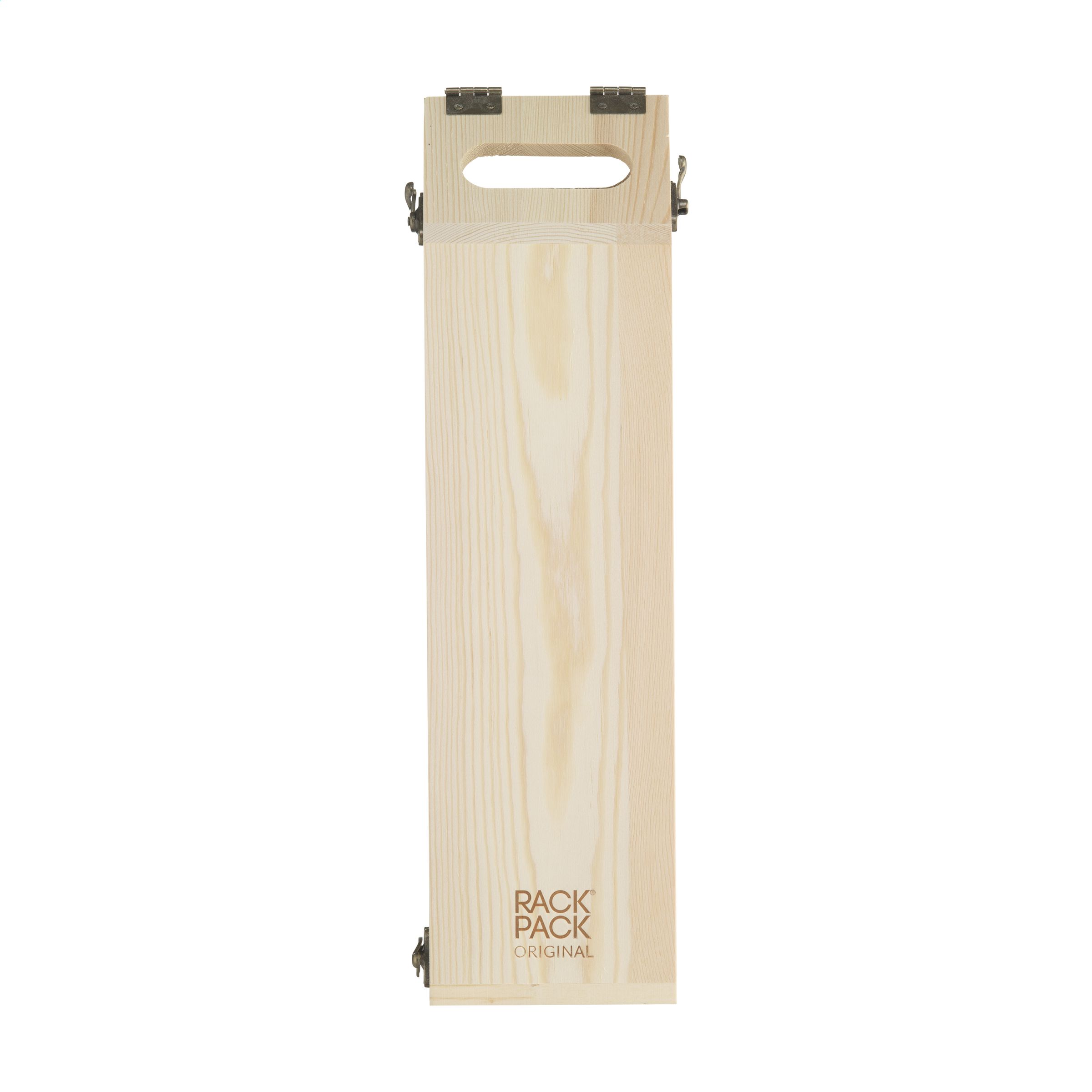 Rackpack Original: Weinkiste und Weinregal in einem. Rackpack ist eine hölzerne Geschenkbox für eine Flasche Wein, die sich in ein Weinlagerregal verwandelt. Mit dem Rackpack hebt sich Ihre Flasche nicht nur von anderen Hostessengeschenken ab, sondern lässt sich auch durch einfaches Drehen an einigen Scharnieren von einem Träger in ein hölzernes Weinregal verwandeln. Es kann auf verschiedene Weise konfiguriert werden, um drei, sechs oder sogar 12 Flaschen Wein zu lagern. Rackpack: eine Wein-Geschenkbox aus FSC 100% zertifiziertes Holz mit einem neuen zweiten Leben! • geeignet für eine Flasche Wein • 8-10 mm FSC 100% zertifiziertes Kiefernholz • Wein nicht inklusive. Wird einzeln in einem Kraftkarton geliefert.
