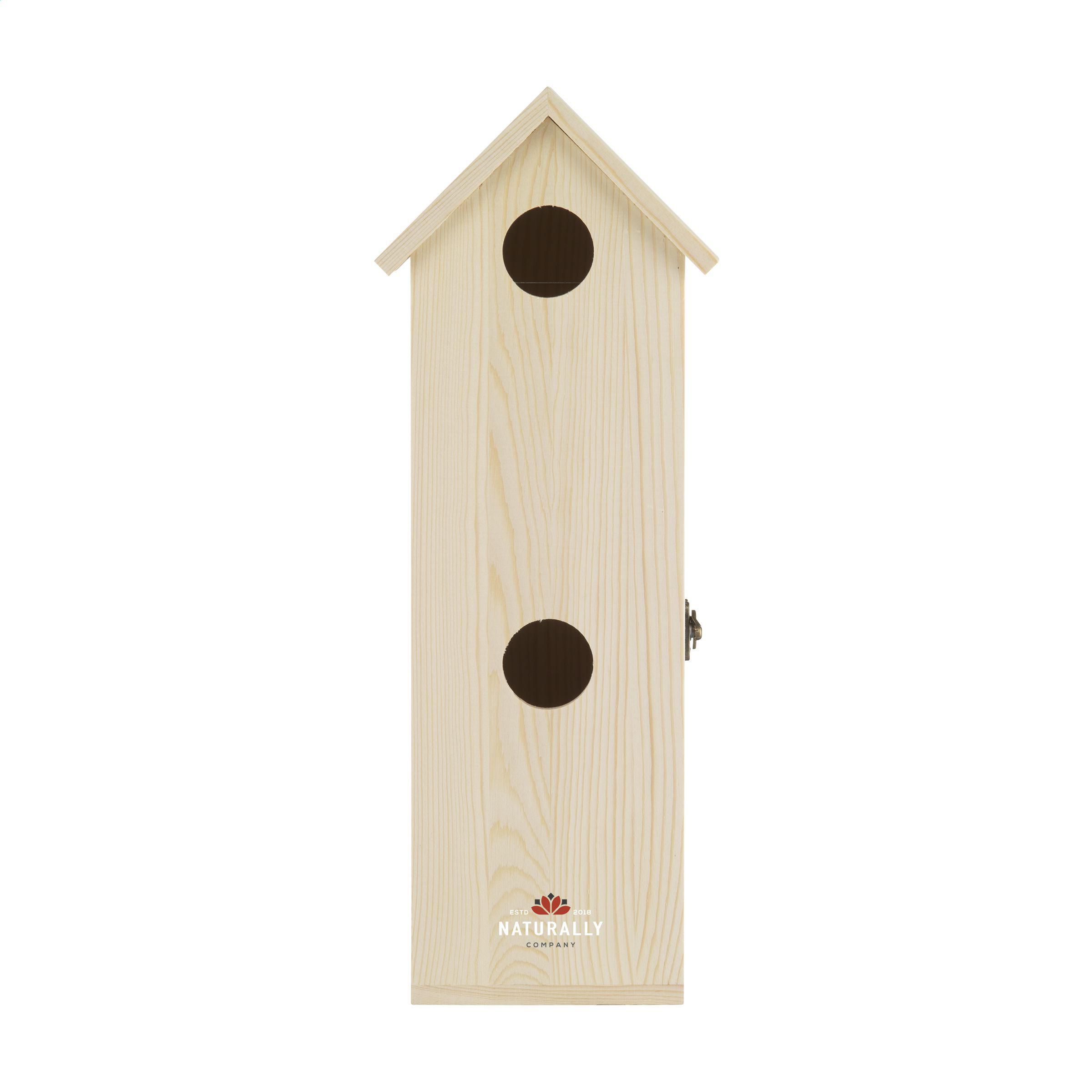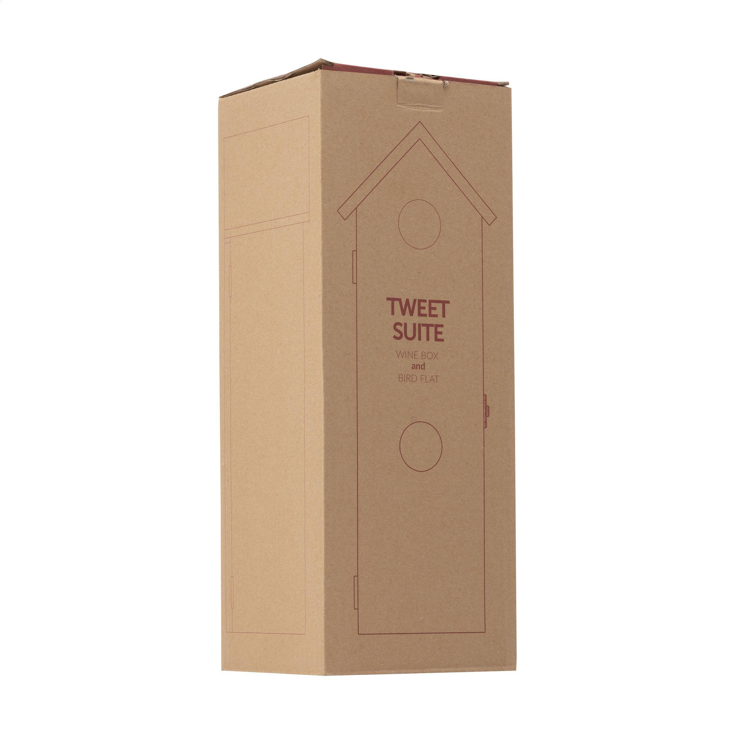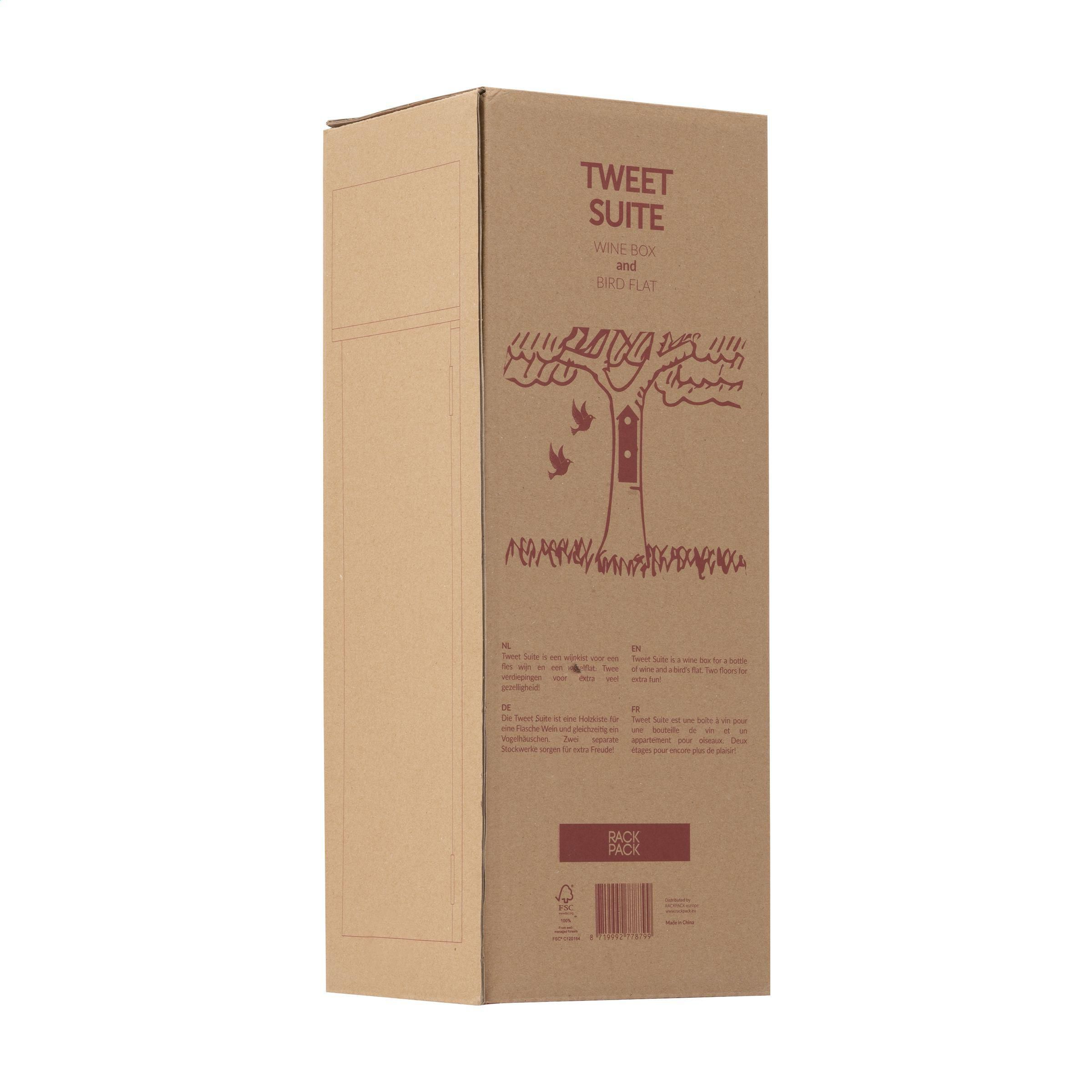 Rackpack Tweet Suite: Weinkiste für Wein und ein Vogelhaus in einem. Wenn Sie diese Weinkiste in Ihrem Garten, an einem Baum oder an einer Stange aufhängen, schaffen Sie ein schönes Vogelhaus, das alle Arten von Vogelfreunden anlockt. Die Tweet Suite bringt Freude für Sie und die Vögel! Rackpack: eine Wein-Geschenkbox aus FSC 100% zertifiziertes Holz mit einem neuen zweiten Leben! • geeignet für eine Flasche Wein • 8-10 mm Kiefernholz • Wein nicht inklusive.