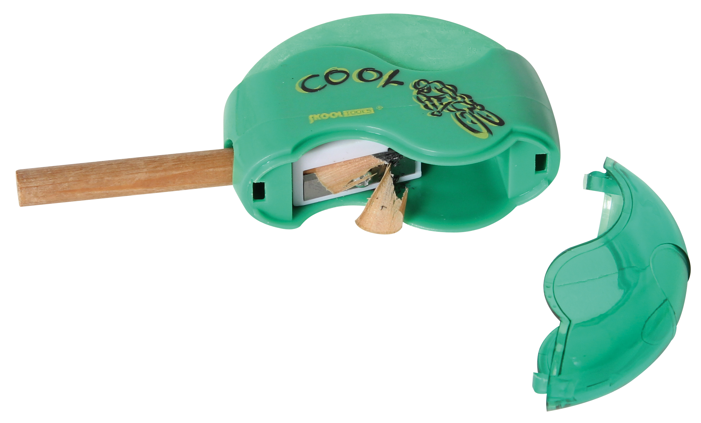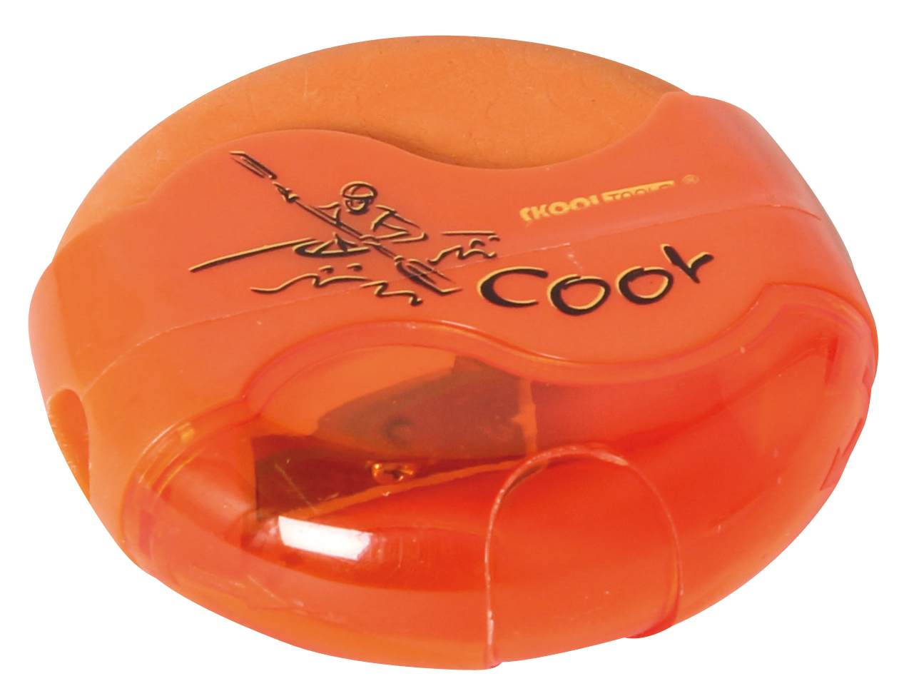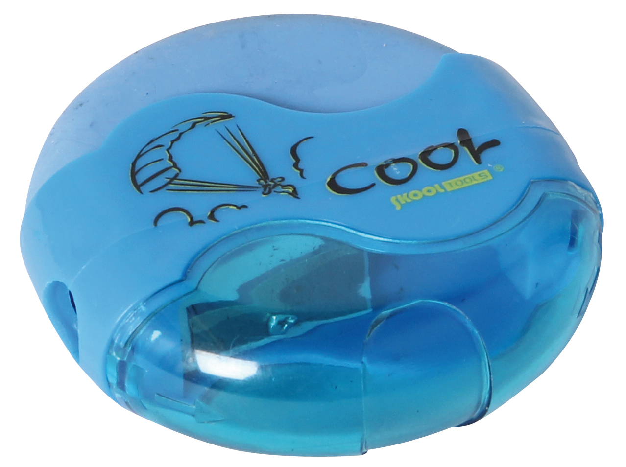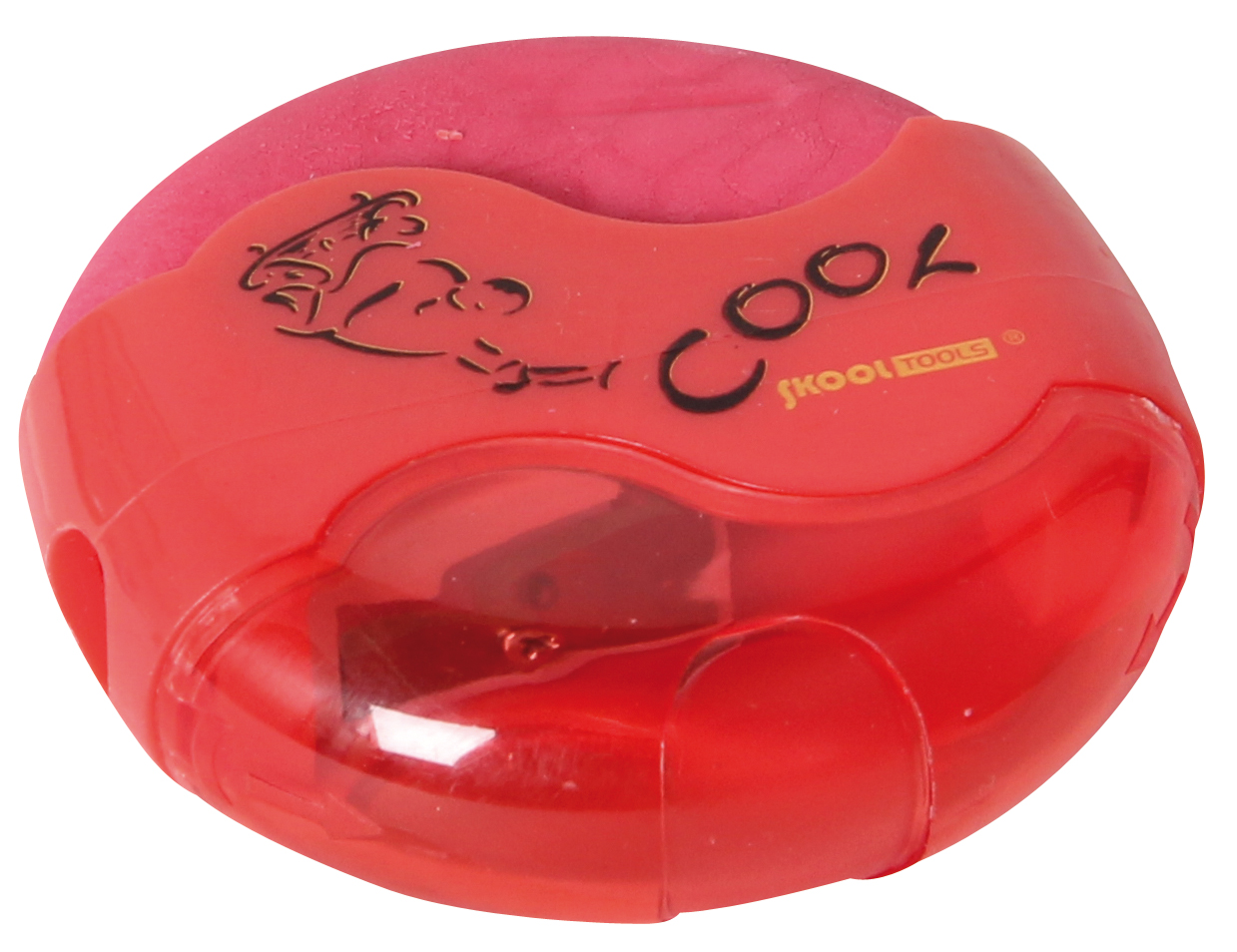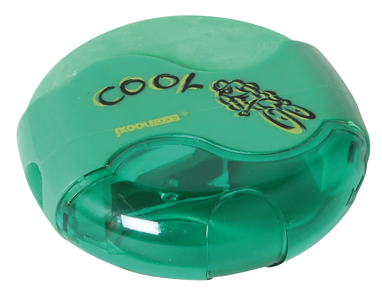 Praktische Kombination aus Dosenspitzer und Radiergummi. Sortiert in vier Farben.