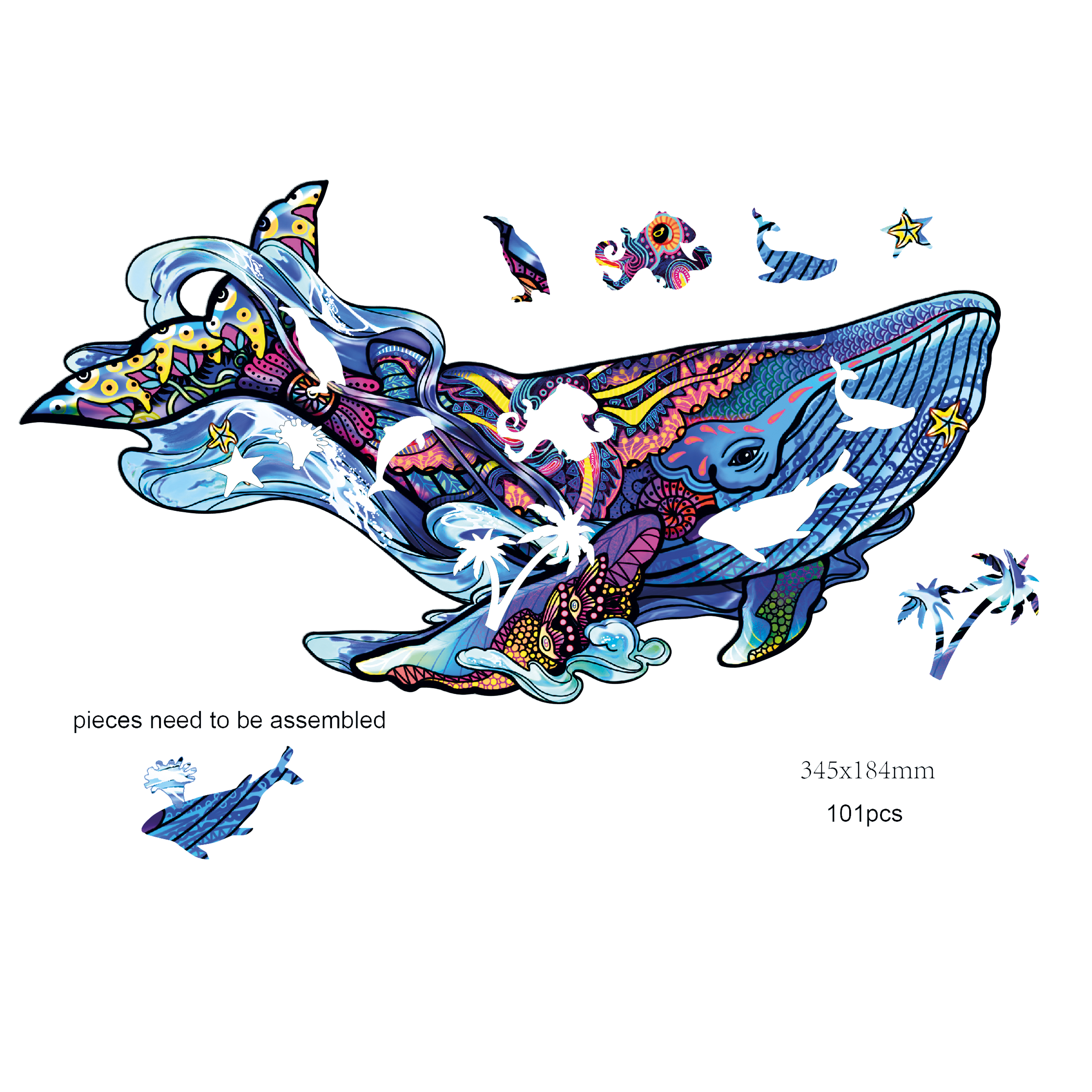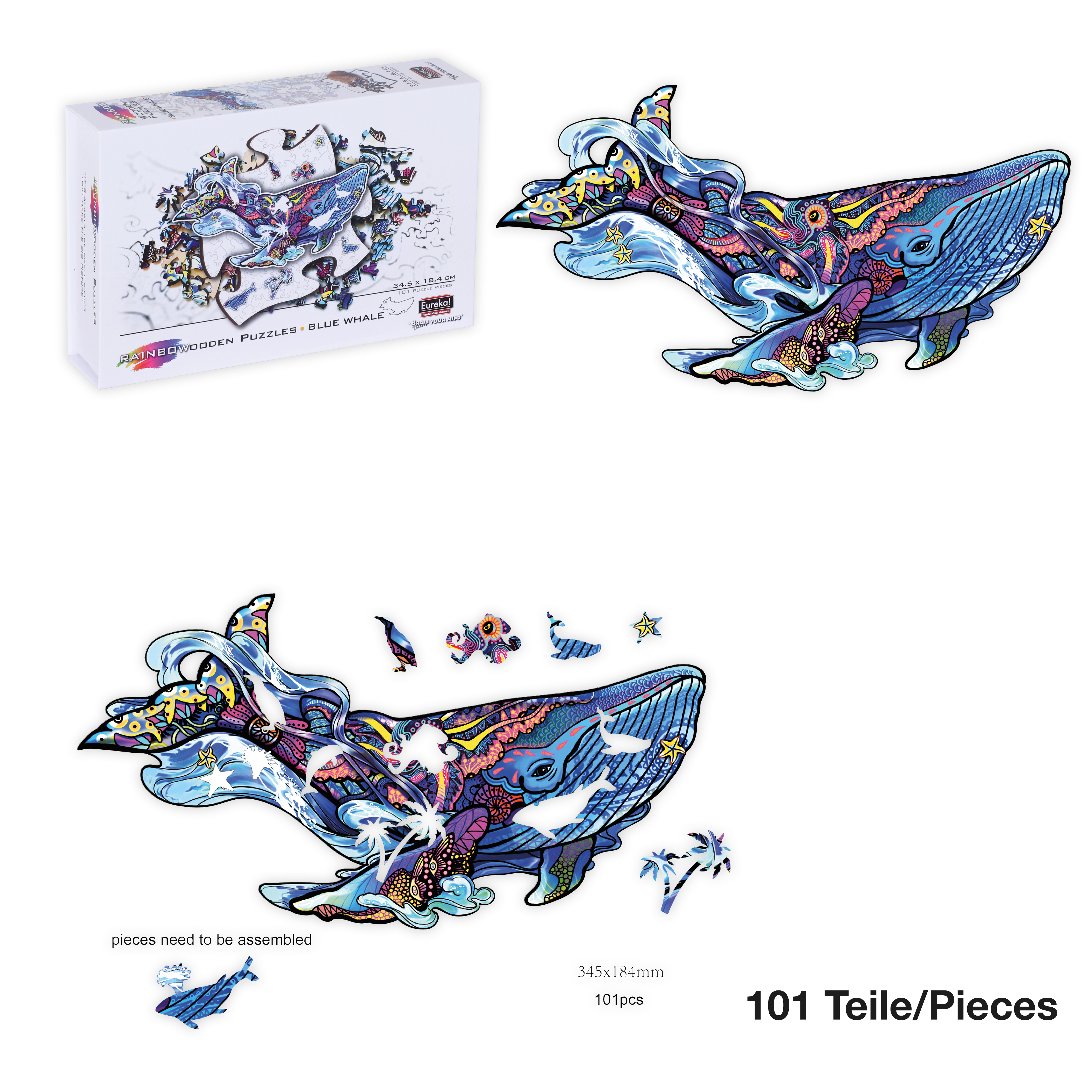 Informationen zu "Rainbow Wooden Puzzle Blue Whale 101tlg. (Blauwal)"