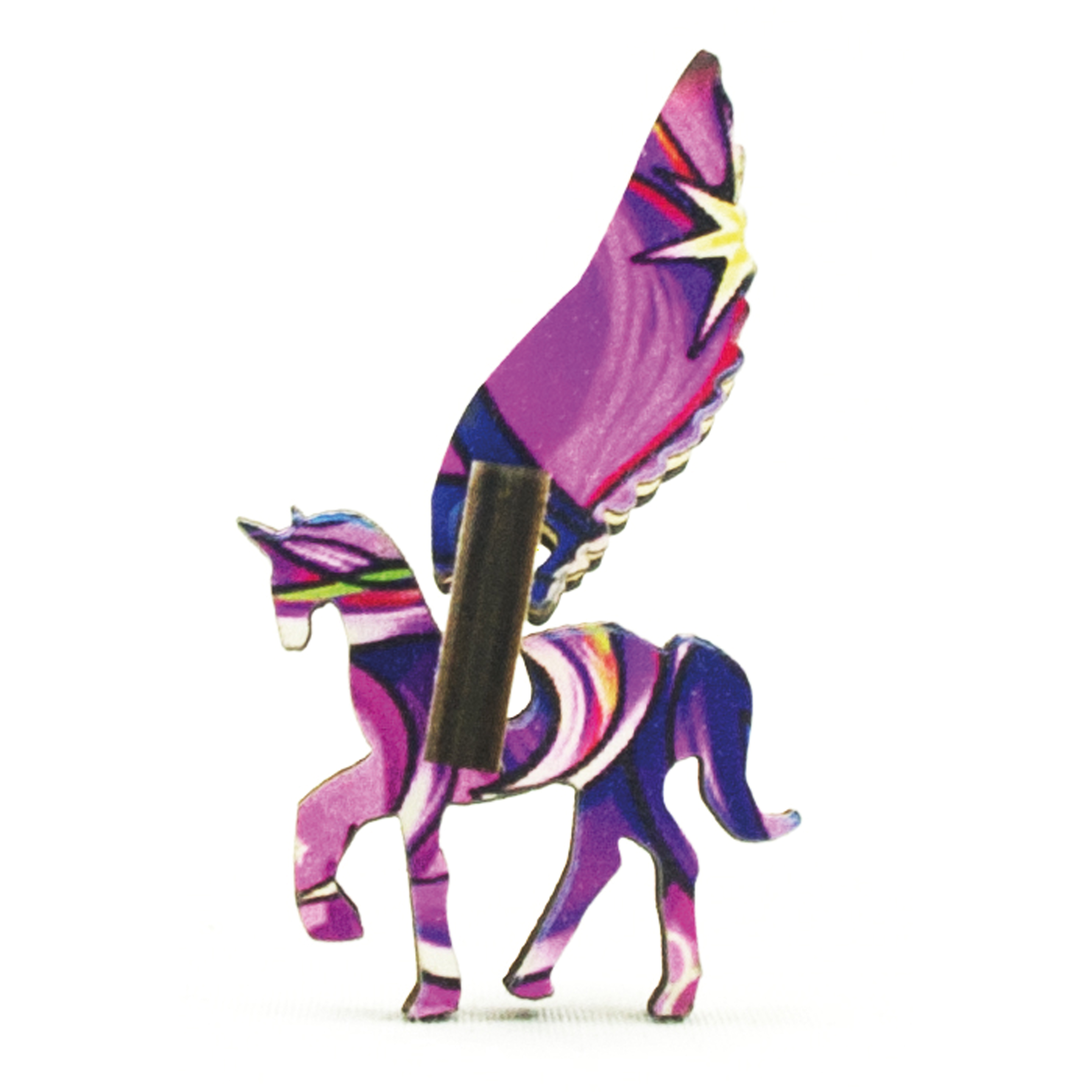 Puzzle aus Holz mit außergewöhnlichen Puzzleteilen. Aus eingen der speziellen Teile kann ein kleines Einhorn gebaut werden!