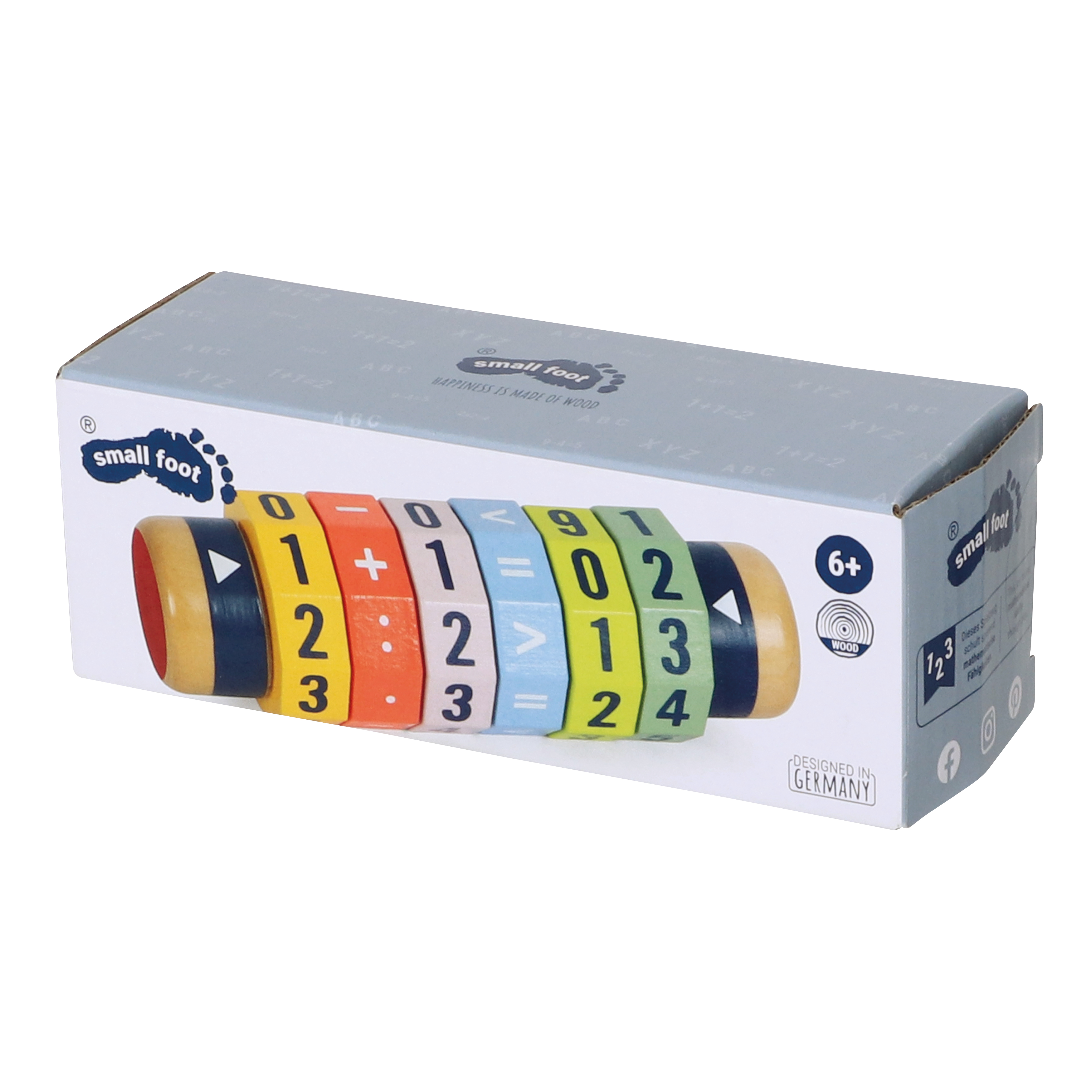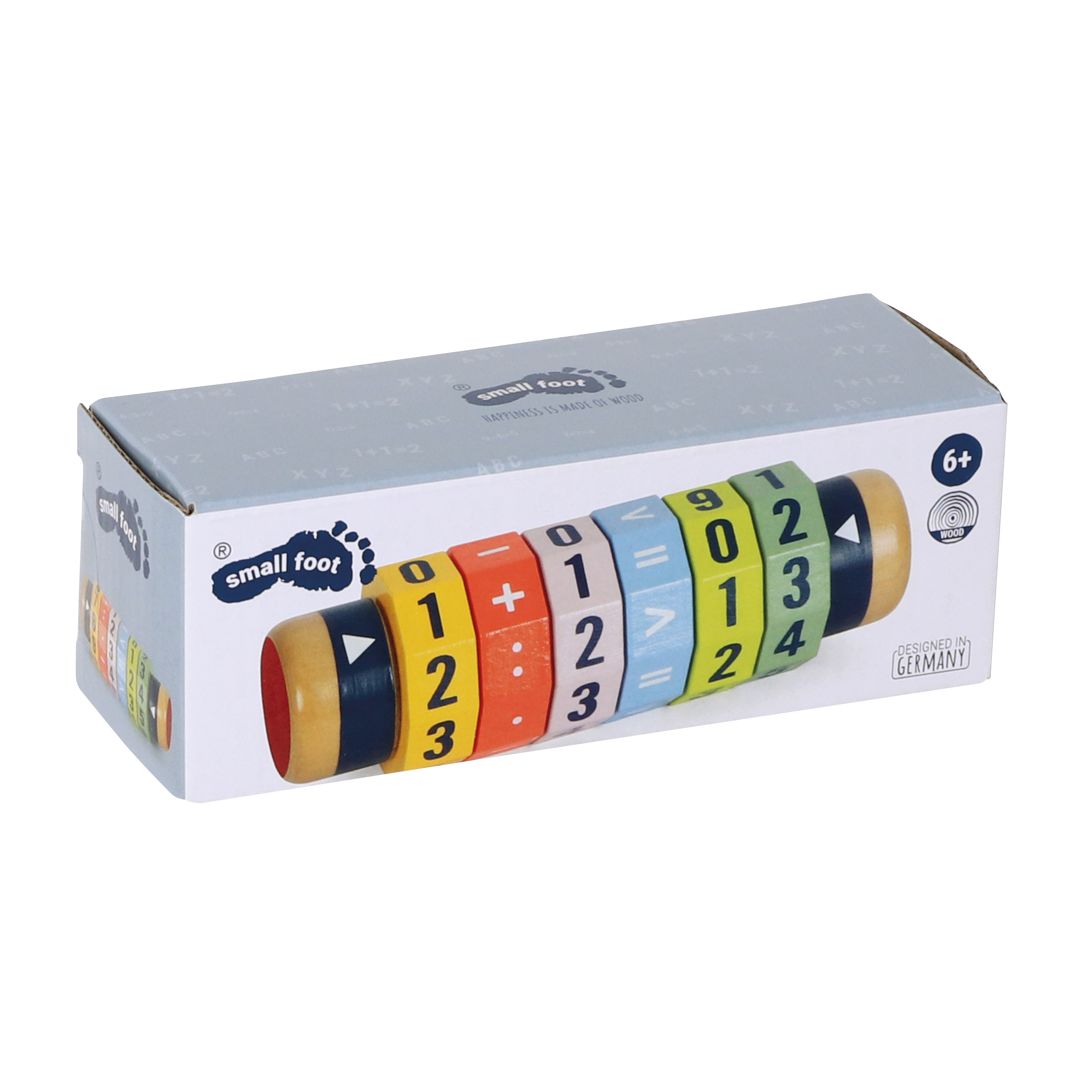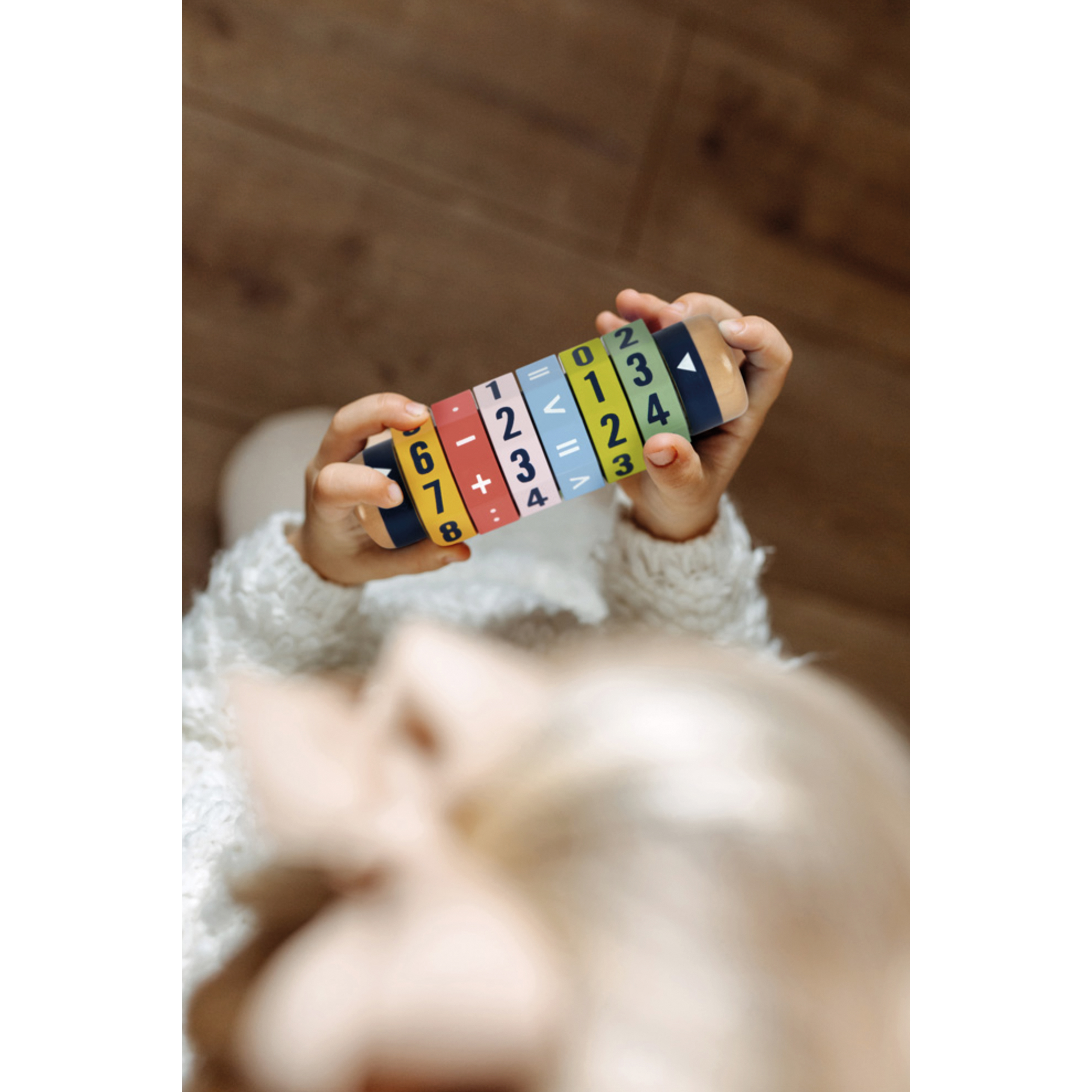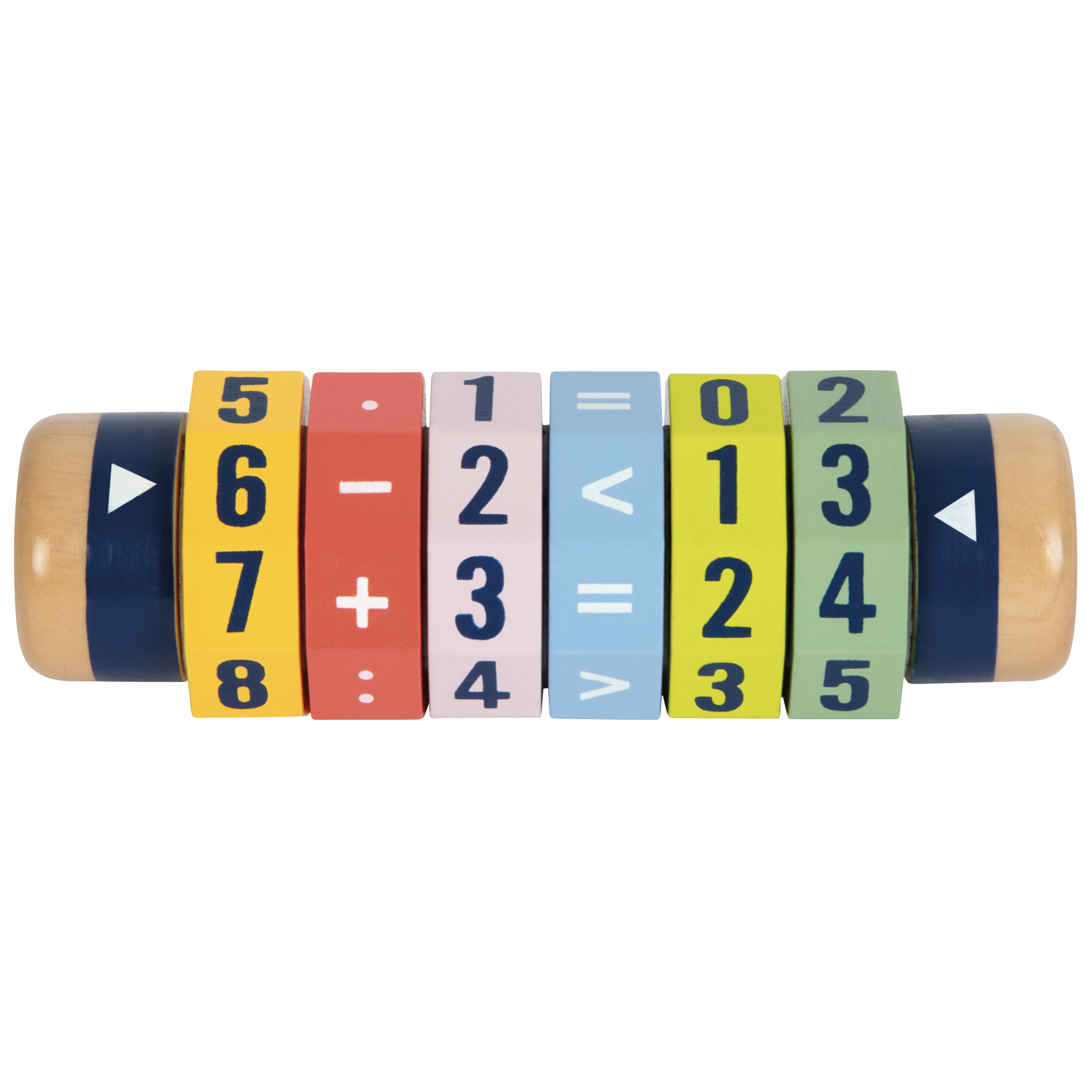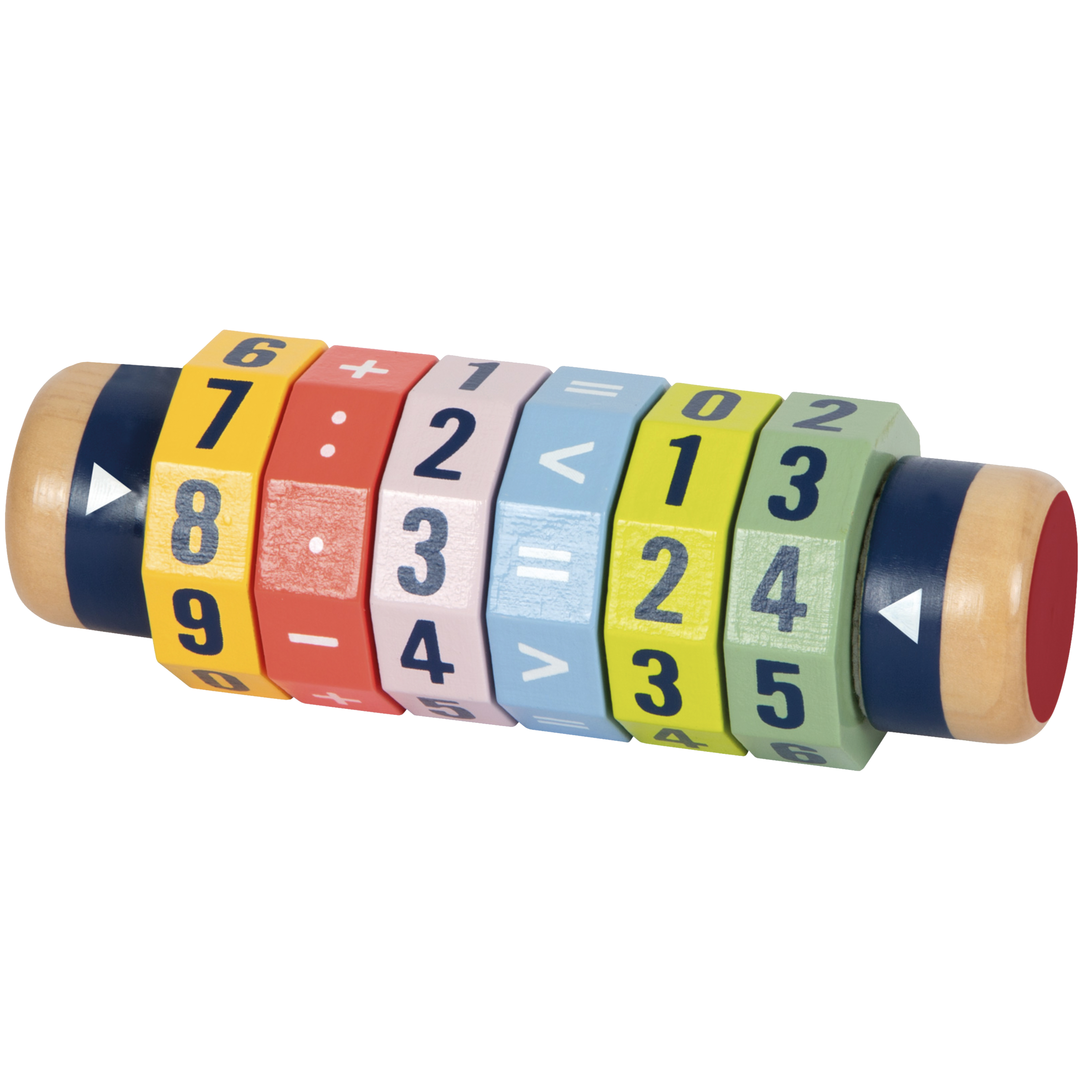 Zahlenverdreher oder Zahlenversteher? Diese Rechenrolle aus stabilem Holz bietet ein großes Spektrum an Möglichkeiten für Rechenaufgaben und animiert dazu, eigene Aufgaben zu stellen und zu lösen. Mit sechs Drehelementen lässt die Rolle die Matheprofis bis 99 addieren, subtrahieren, multiplizieren und dividieren. Durch den Drehmechanismus können immer wieder neue Rechenaufgaben gestellt werden. Durch die kompakte Bauform lässt sich die Rechenrolle außerdem überall hin mitnehmen Í eine tolle Idee! Diese pädagogisch wertvolle Rechenhilfe aus Holz überzeugt durch den hochwertigen Druck und die moderne Farbgebung. Ein Must-Have unter den Lernspielzeugen, das in keinem Lernspielzeuge- Sortiment fehlen sollte.