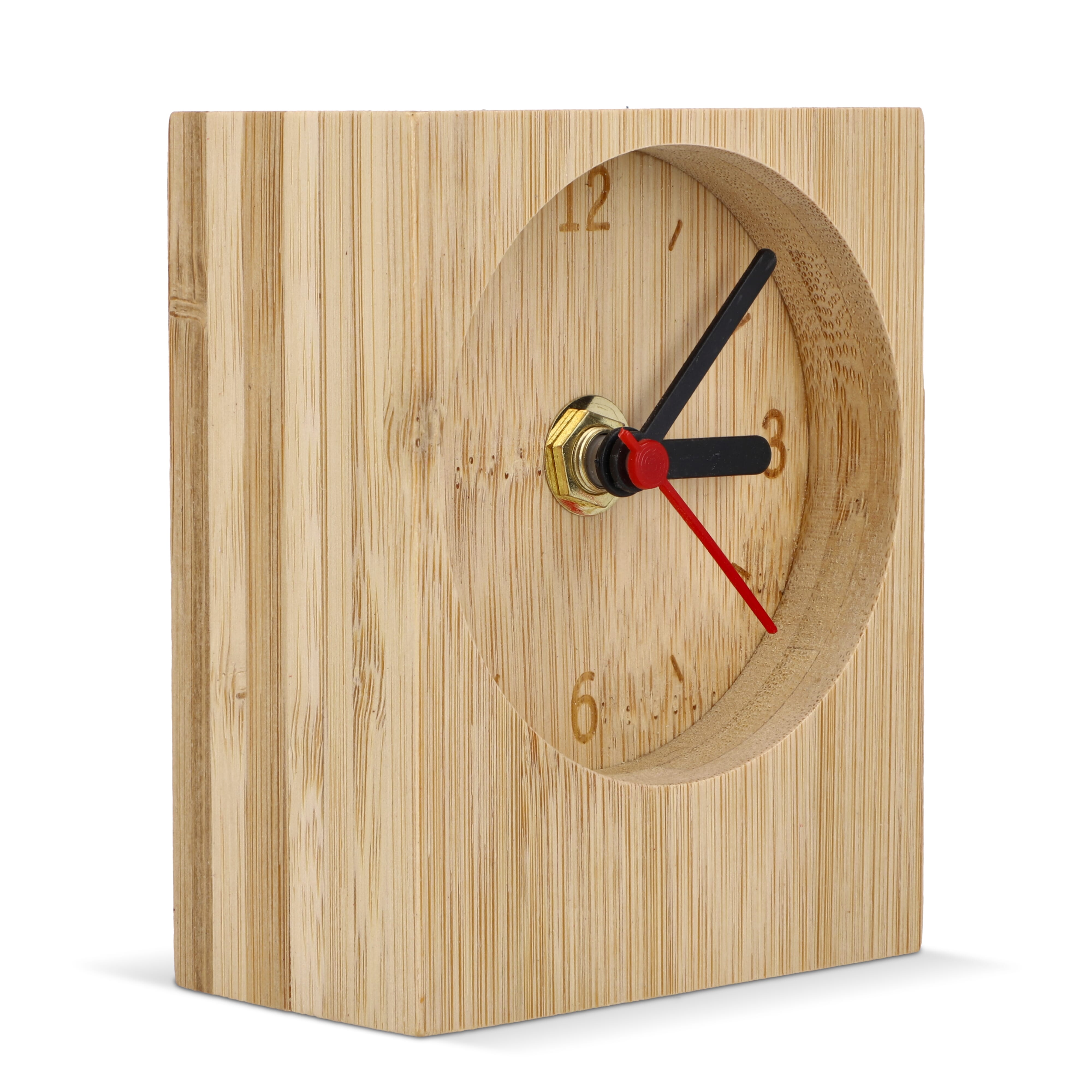 Eine moderne, minimalistische rechteckige Tischuhr aus Bambus. Mit klaren Linien und einer gut ablesbaren Anzeige vereint sie Stil und Praktikabilität und passt perfekt auf jeden Schreibtisch oder ins Homeoffice. Inklusive Batterien und verpackt in einer Geschenkbox.