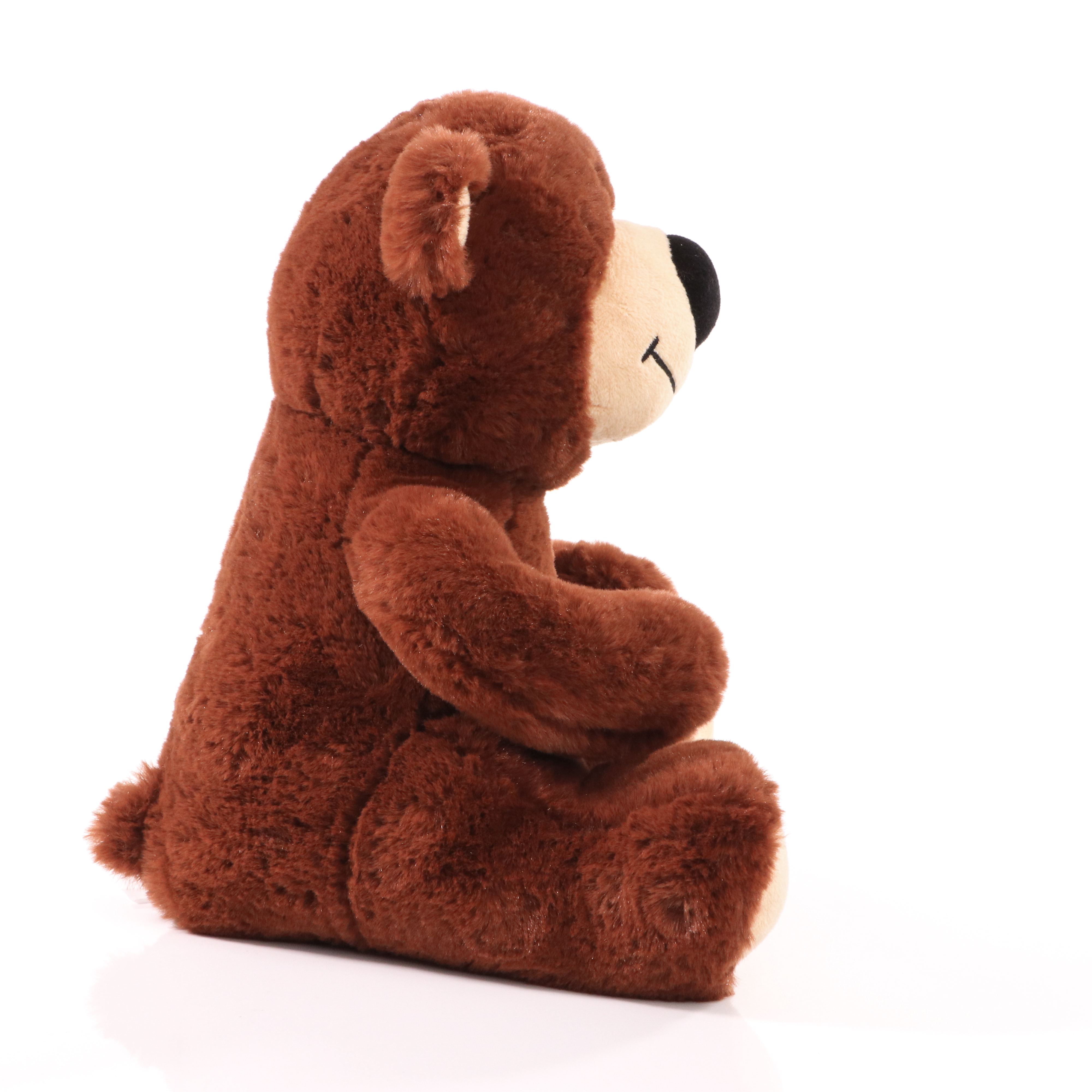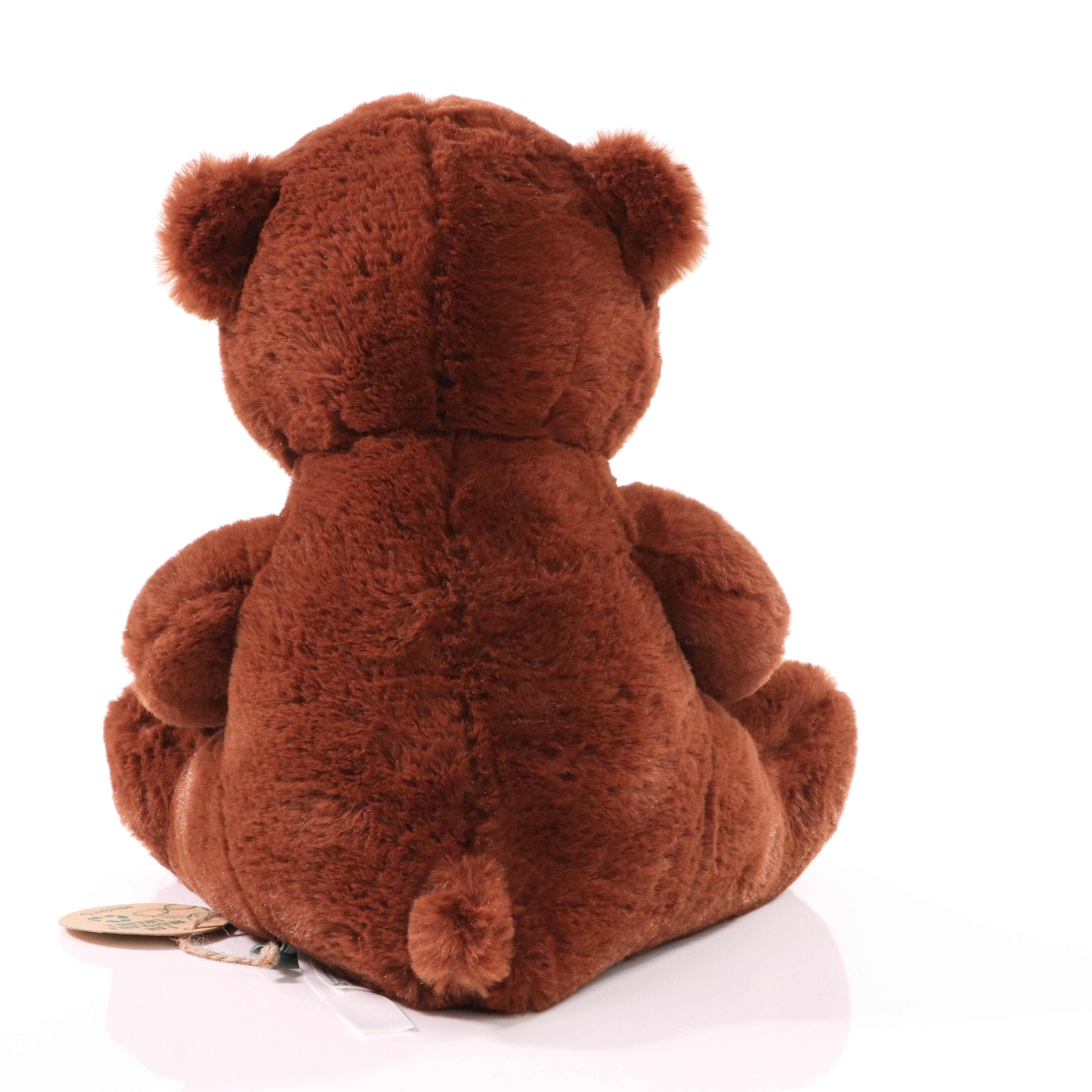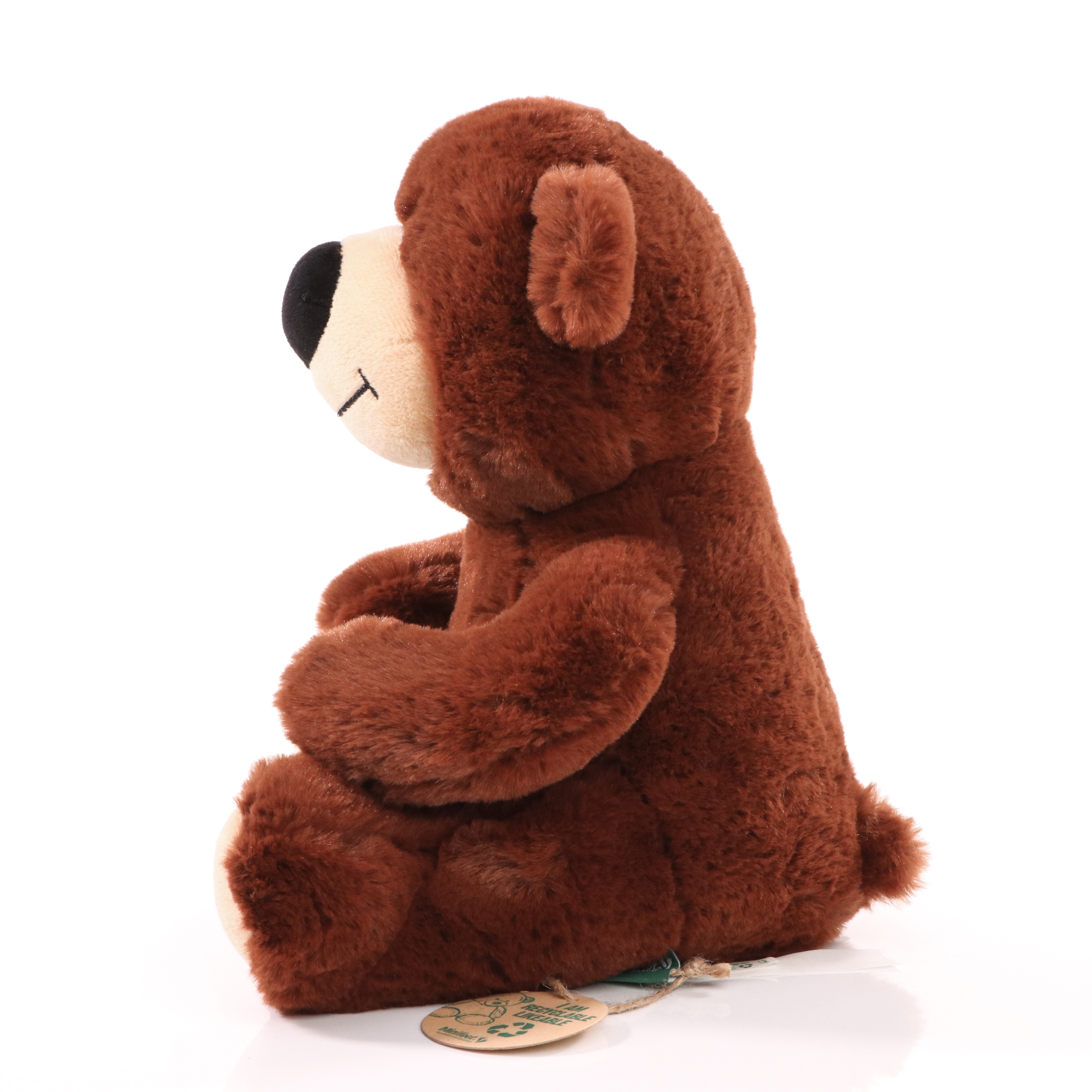 Dieser superweiche Kuschelbär lässt Herzen höherschlagen – von Groß und Klein. Sein Gesicht ist besonders freundlich und die offenen Arme warten auf eine Umarmung. Der RecycelBär® Nature besteht aus genutzten und recycelten Plastikflaschen. Für die Herstellung des Materials werden etwa 8 PET-Flaschen (500ml) verwendet. Augen und Nasen des Bären sind gestickt, es werden also keine zusätzlichen Plastikteile verwendet. Ein treuer, geliebter Begleiter.