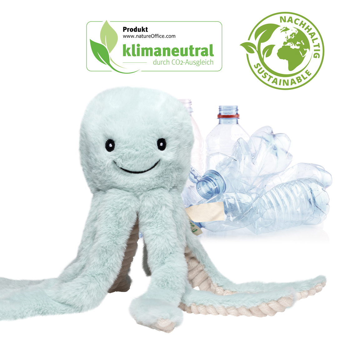 Studien haben gezeigt, dass Kuscheltiere in Form eines Oktopus ideal für den Start von Früh- und Neugeborenen sind, weil die Tentakel an die Nabelschnur erinnern. Liebevoll designt und entwickelt leisten die Recycel-Tieren außerdem einen wichtigen Beitrag zum Thema Nachhaltigkeit: Alle Recycle-Tiere bestehen aus genutzten und recycelten Plastikflaschen. Augen und Nase sind gestickt, es werden also keine zusätzlichen Plastikteile verwendet. Diese liebevoll gestalteten Schätze des Meeres aus zartem Plüsch eignen sich perfekt zum Schmusen, Kuscheln und Liebhaben. Versicherungen, Banken, Krankenhäuser, Kinderärzte und Kommunen können mit diesen Lieblingen im Willkommenspaket für den neuen Erdenbürger nicht nur ein Lächeln schenken, sondern auch Verbindungen fürs Leben schaffen. Eine Veredelung ist via Druck oder per eigenem Plott auf der angebrachten Werbefahne möglich und erinnert so stets an den Schenker.