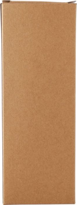 Recycelte Edelstahlflasche (230 ml) mit zwei Bechern (40 ml) und PU-Außenhülle. Hergestellt aus rostfreiem Stahl 304. Die Becher werden oben mit Druckknöpfen befestigt. Einzeln verpackt in einer braunen Pappschachtel.