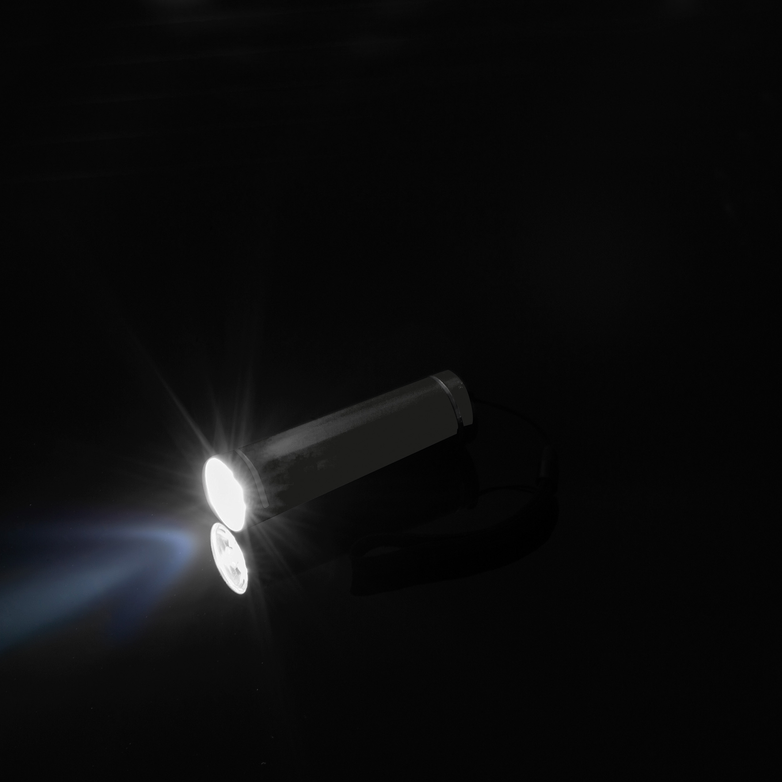 COB-Taschenlampe aus recyceltem Aluminium, 100 Lumen. Leistungsstark und zuverlässig für optimale Beleuchtung. Ihre Werbung gravieren wir auf die Taschenlampe. Exklusive 3 AAA Batterien, bestellen Sie diese gleich mit (Art. 999400).
