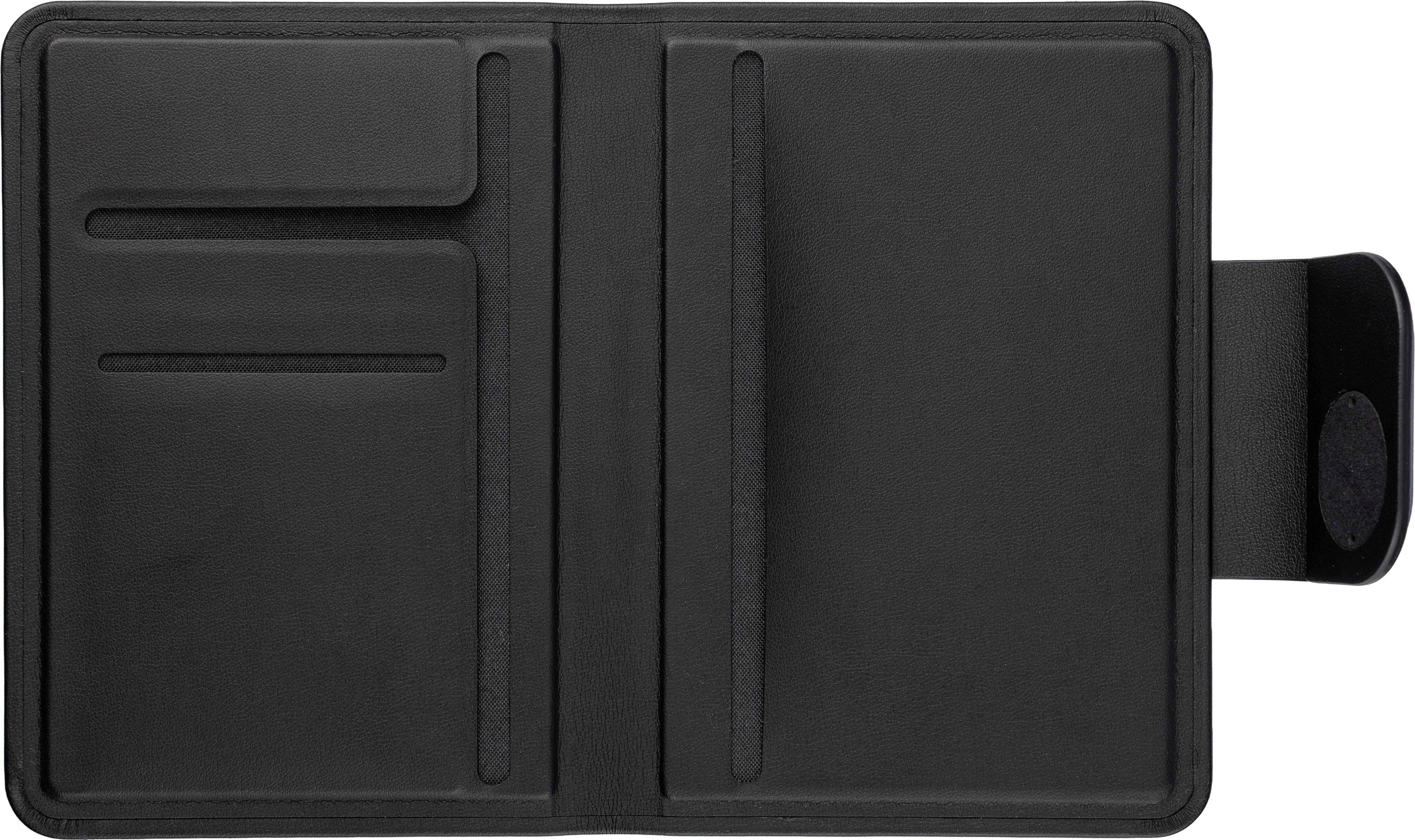Das Hardcover-Reisepassetui aus recyceltem PU ist mit einem Magnetverschluss und einem in die Klappe integrierten Apple-Find-My-Tracker ausgestattet. Es bietet drei Innenfächer zur Organisation von Dokumenten und Karten. Es verwendet "Impression” als Gerätenamen und enthält das Impression-Logo für die ID-Registrierung. Es ist einzeln verpackt in einer Box aus Kraftpapier.