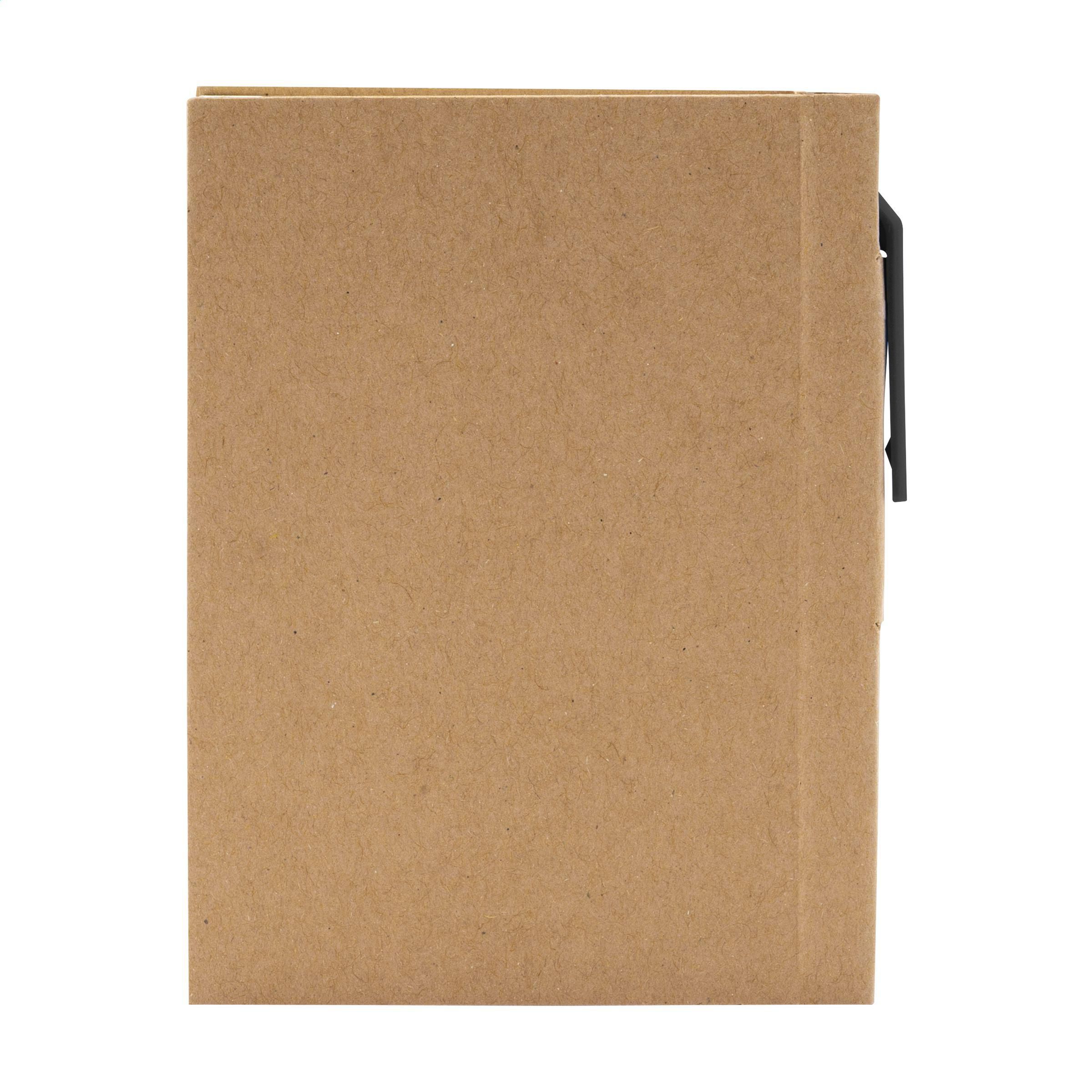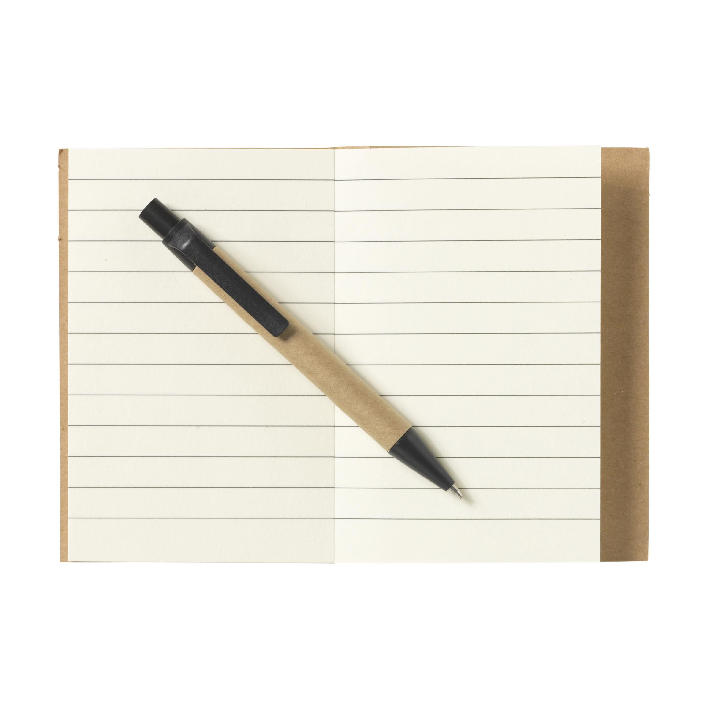 Mininotizbuch aus recyceltem Material mit ca. 80 Blatt cremefarbenem, liniertem Papier (70 g/m²), Pappumschlag und gebundenem Rücken. Inkl. blauschreibendem Kugelschreiber. FSC Mix zertifiziert.